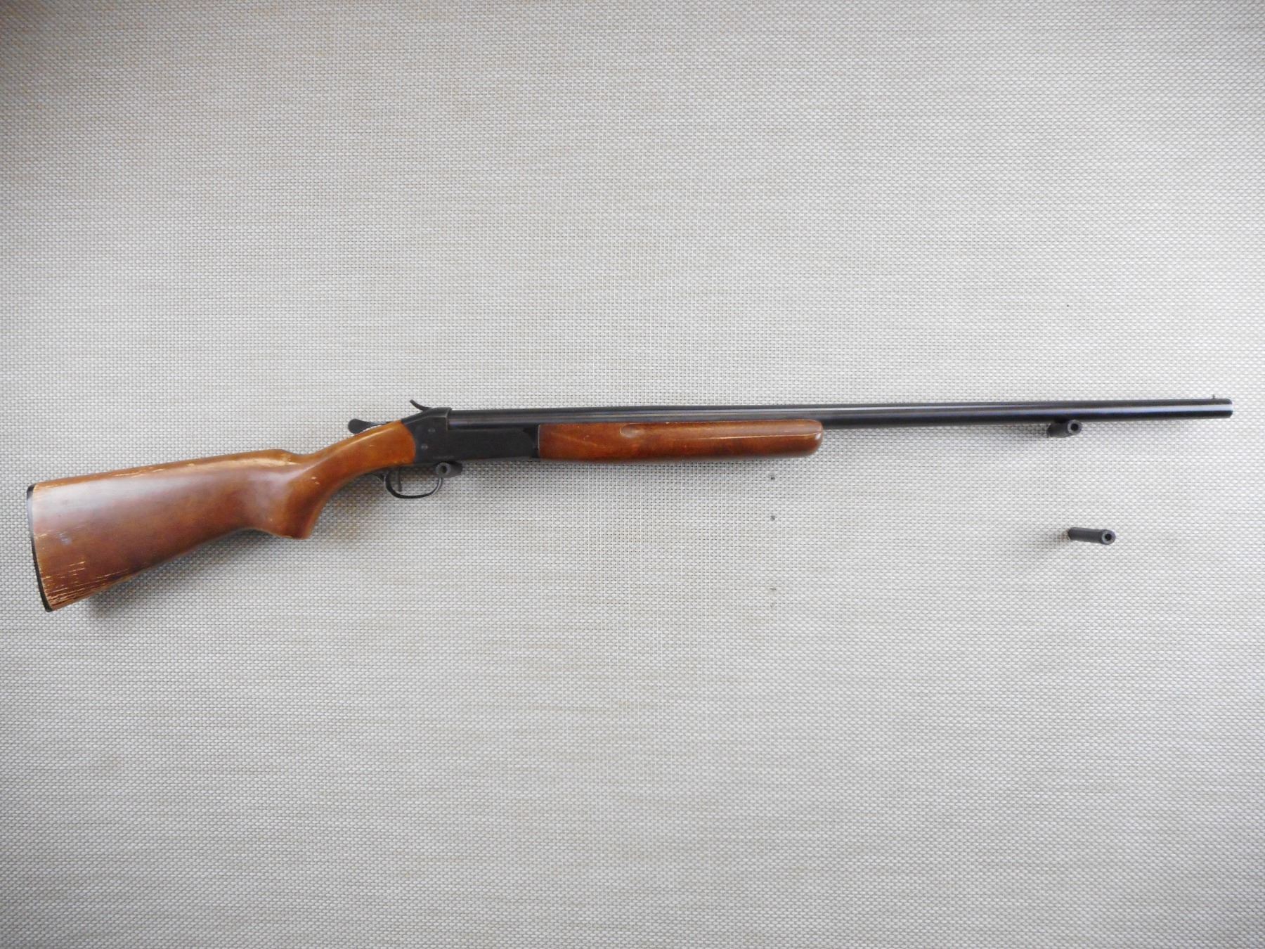 COOEY , MODEL: 840 , CALIBER: 20GA X 3", FIXED FULL CHOKE, VERY GOOD BORE, TWO PIECE HARDWOOD STOCK WITH PLASTIC BUTT PLATE, STOCK SHOWS EXTENSIVE HANDLING MARKS , ACTION: BREAK ACTION SINGLE SHOT SHOTGUN , BARREL LENGTH: 28" , CONDITION: 6/10 , SERIAL # 1000059 , CLASS: CANADIAN NON RESTRICTED CLASS