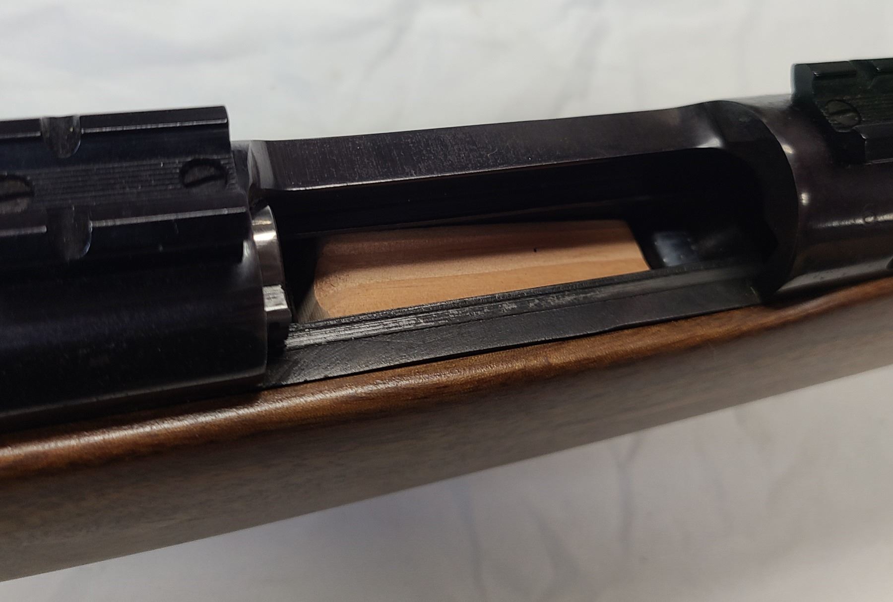 Magazine well internals have been removed and a wood block is fitted so this Rifle