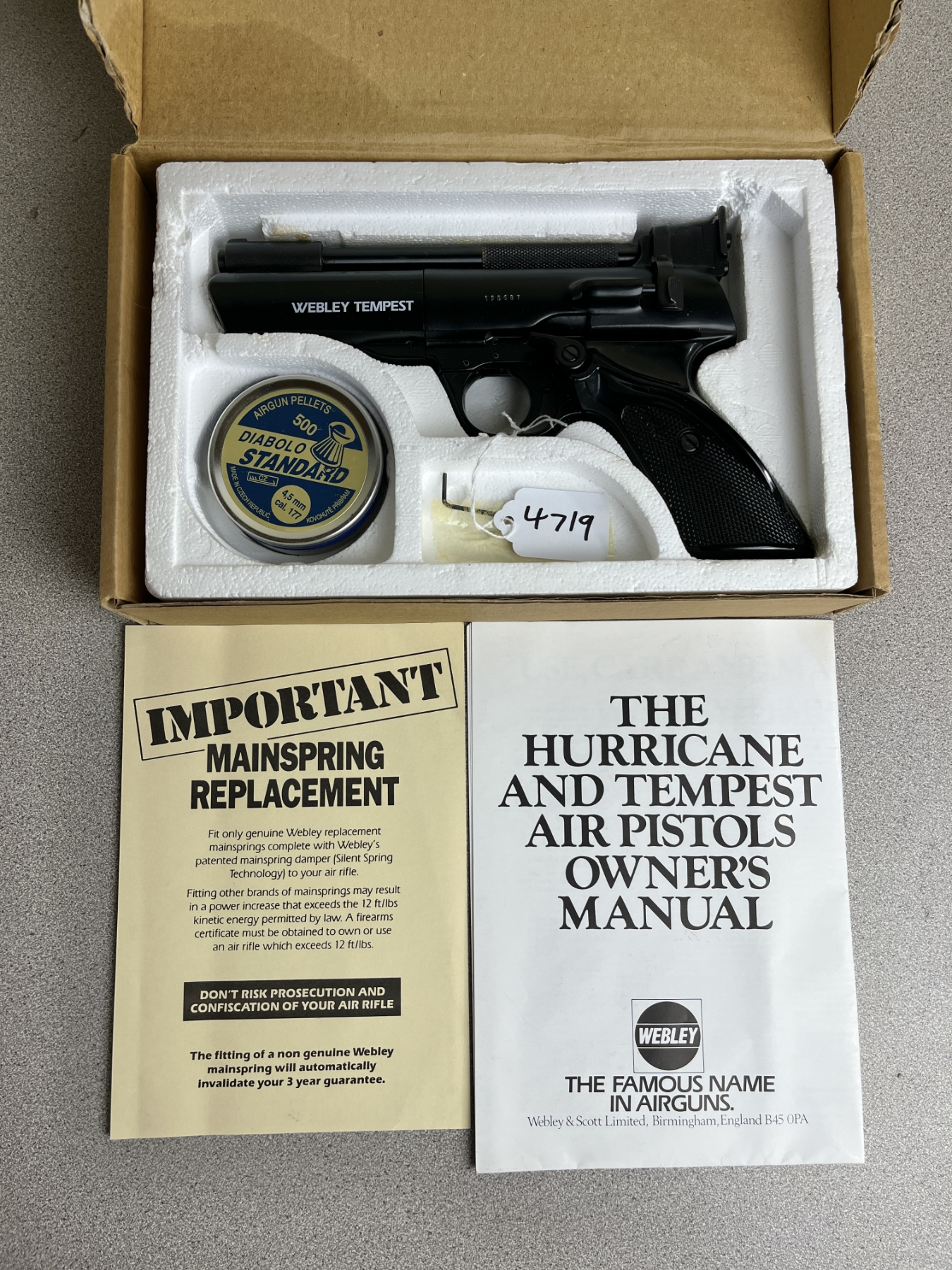 CONDITION: G OVERALL. SPECS: APPROX 7IN BBL WITH IRON SIGHTS. <500FPS. EXTRAS: ORIGINAL BOX AND MANUAL. S/N: D22302