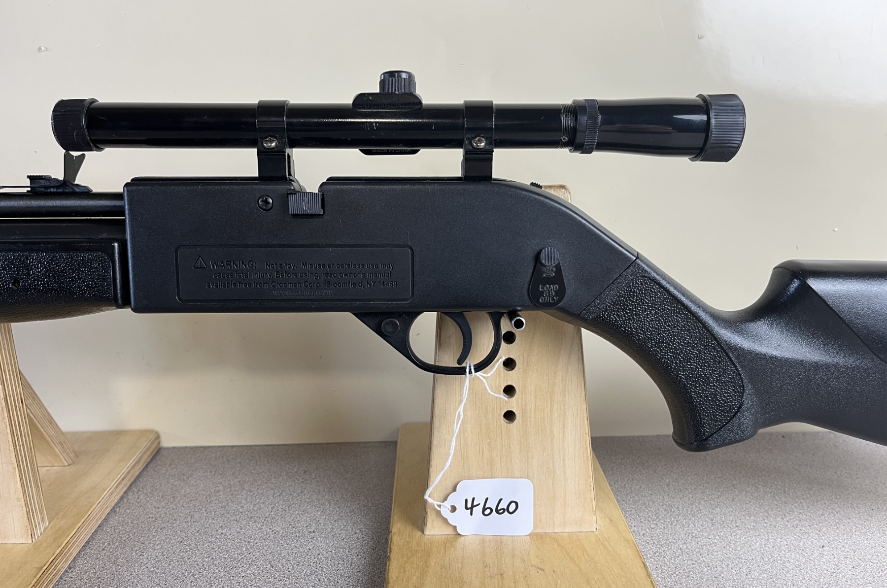 CONDITION: G OVERALL INCL BORE. SPECS: 17-1/2IN BBL WITH FIBRE OPTIC SIGHTS. <500FPS. EXTRAS: CROSMAN 4X15 SCOPE CLEAR WITH DUPLEX CROSSHAIRS. S/N: 513109182C