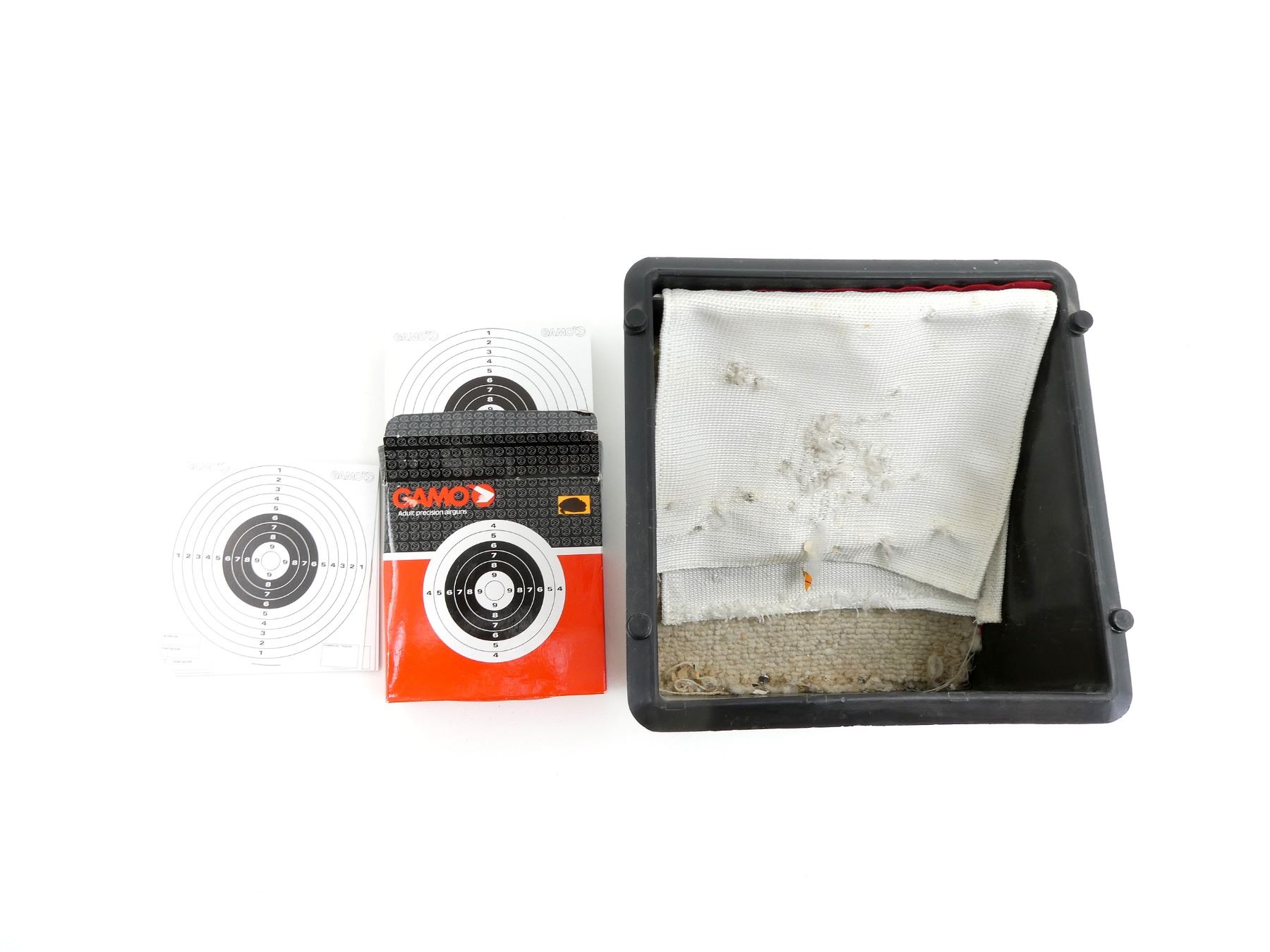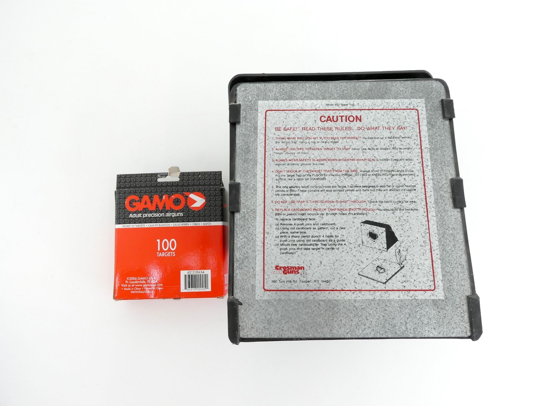 CROSMAN MODEL 850 TARGET TRAP AND TARGETS LOT