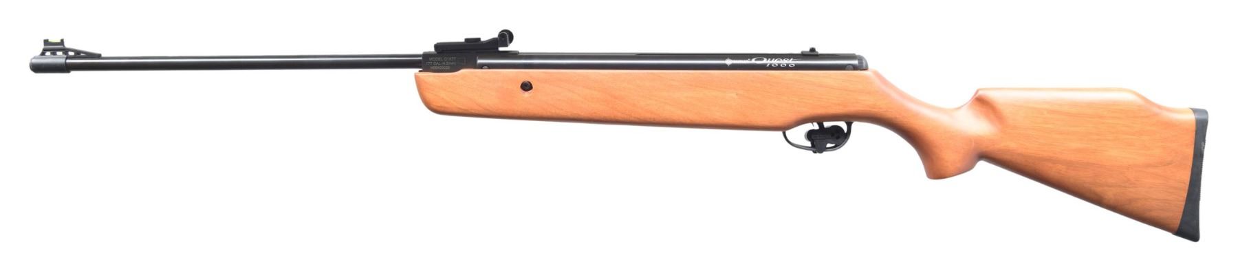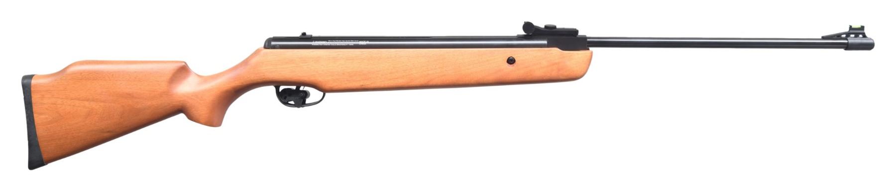 Cal. .177 / 4.5mm Pellet. S# N05X00022. Bbl. 18.75" bbl. Fiber optic sights. Grooved receiver. Barrel break cocking spring piston. Hardwood stock w/ black pad. CONDITION: all aspects near excellent w/ Crosman lock in trigger. (02-24601/MD). $40-60.