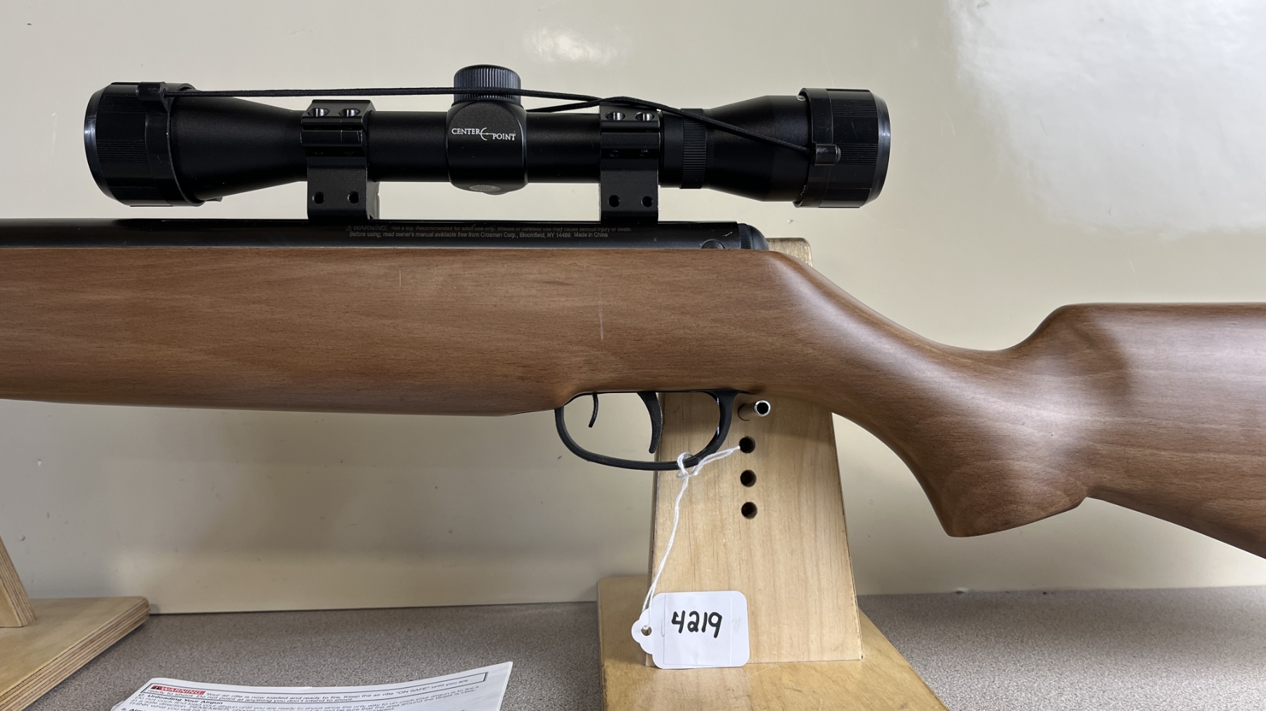 CONDITION: G OVERALL INCL BORE. SPECS: 18-1/2IN BBL, WITH FIBRE OPTIC SIGHTS. >500FPS. EXTRAS: CENTERPOINT 4X32 SCOPE, CLEAR WITH CROSSHAIRS. INCL OWNERS MANUAL. S/N: 612X17318