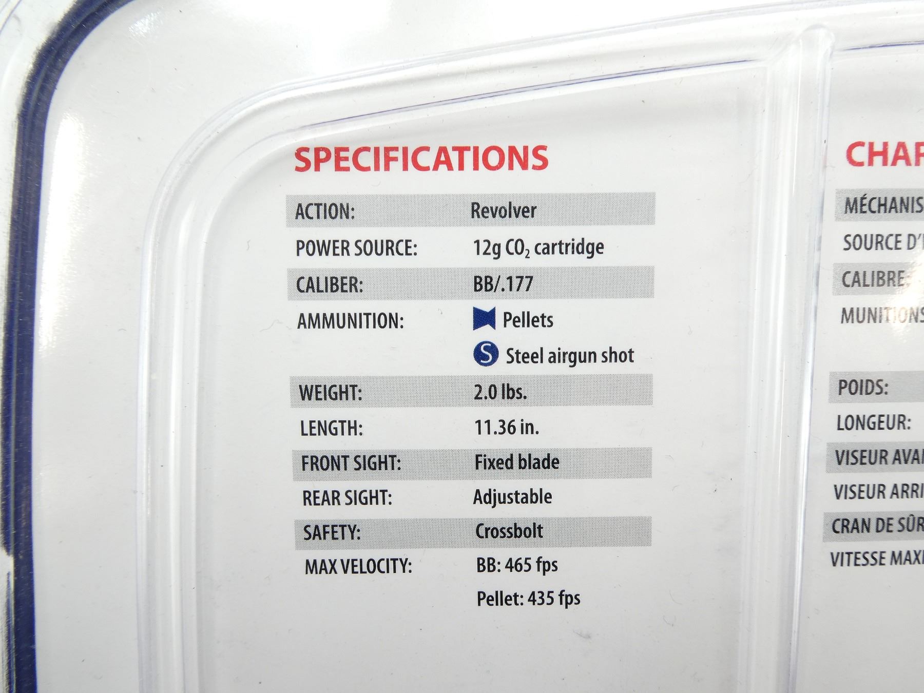 (1) .177 CAL, CO2 POWERED, DUAL AMMO REVOLVER, INCLUDES CLIPS FOR BB AND .177 CAL PELLETS, NO COCKING ISSUES, NOT FULLY TESTED, IN ORIGINAL PACKAGING, ETC. SEE PHOTOS.