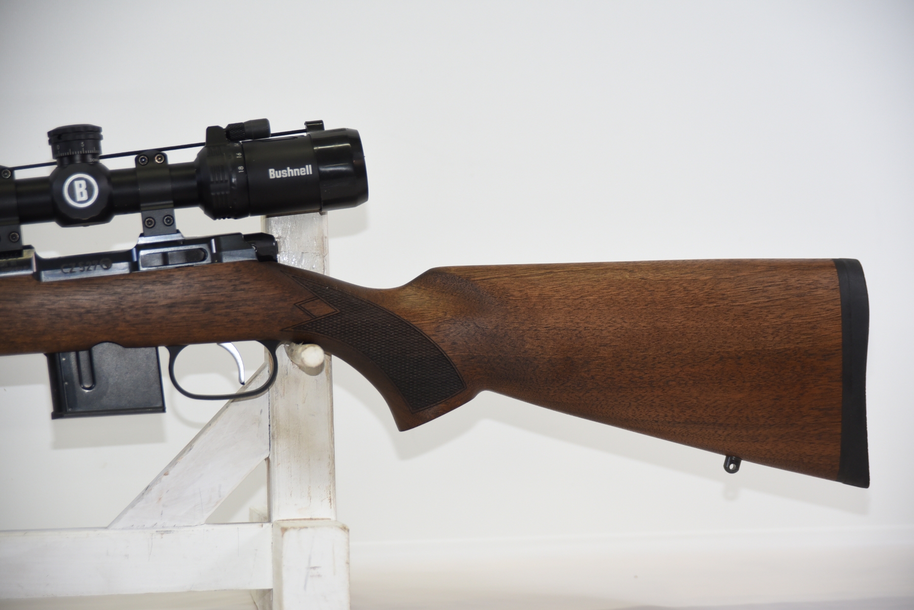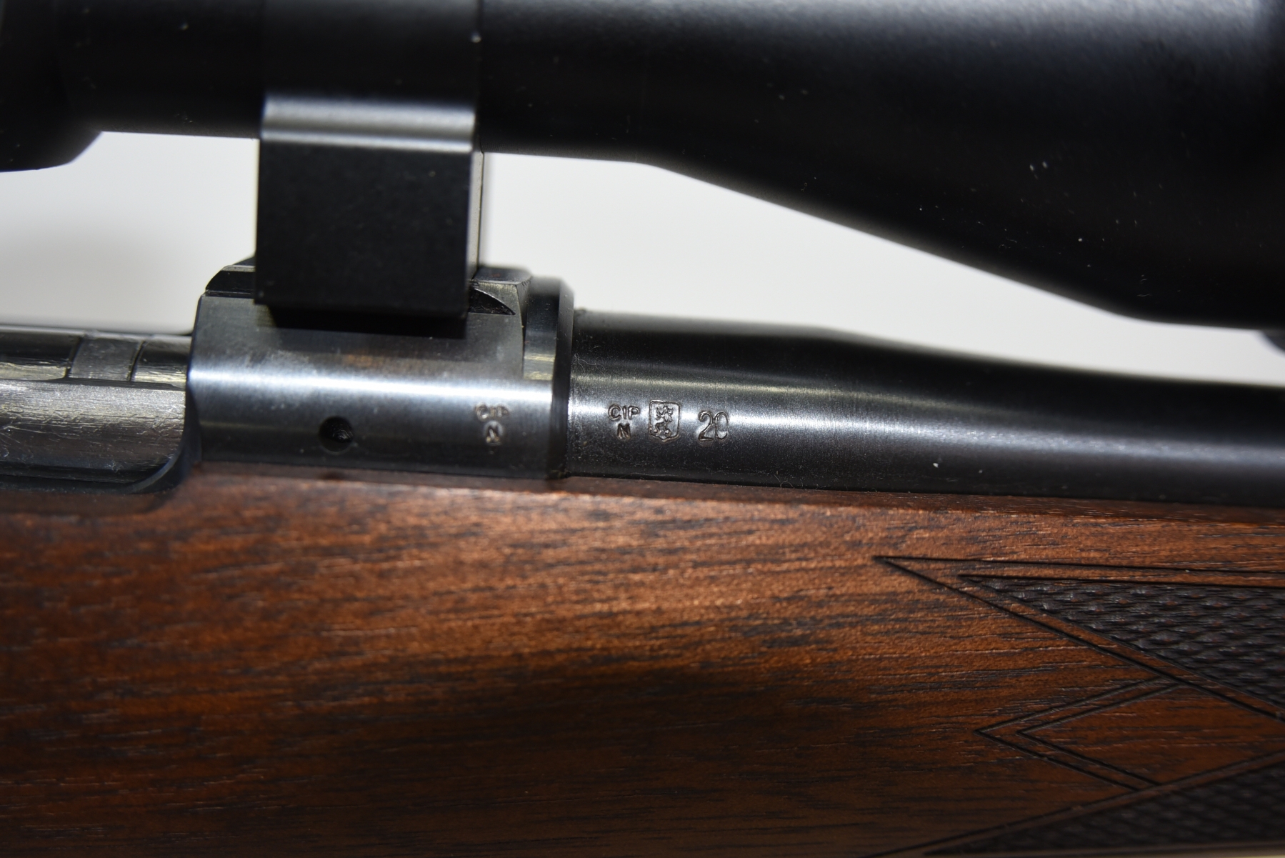 Wood stock shows few light scratches, scuffs, light dents; condition is excellent.