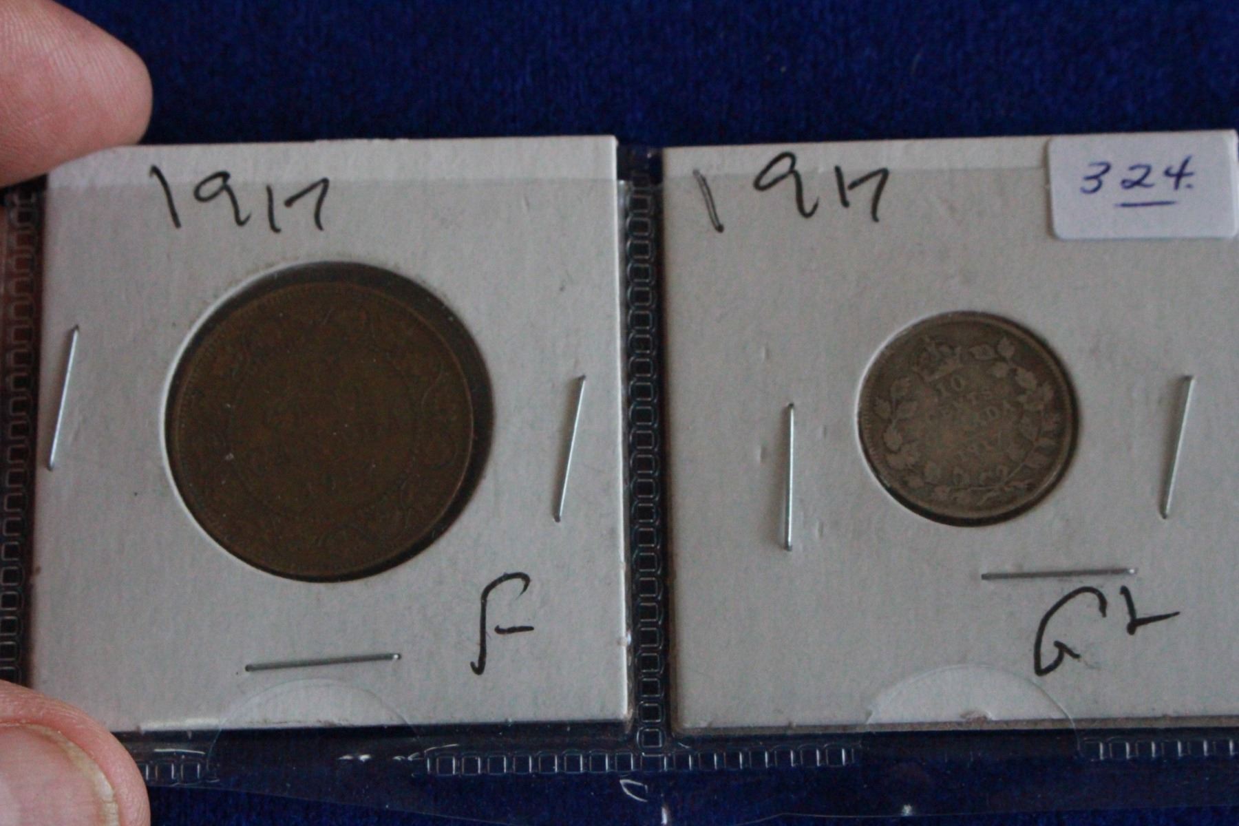 Canada Coins (2) - (1) 1917 One Cent & (1) 1917 Ten Cent (Silver)