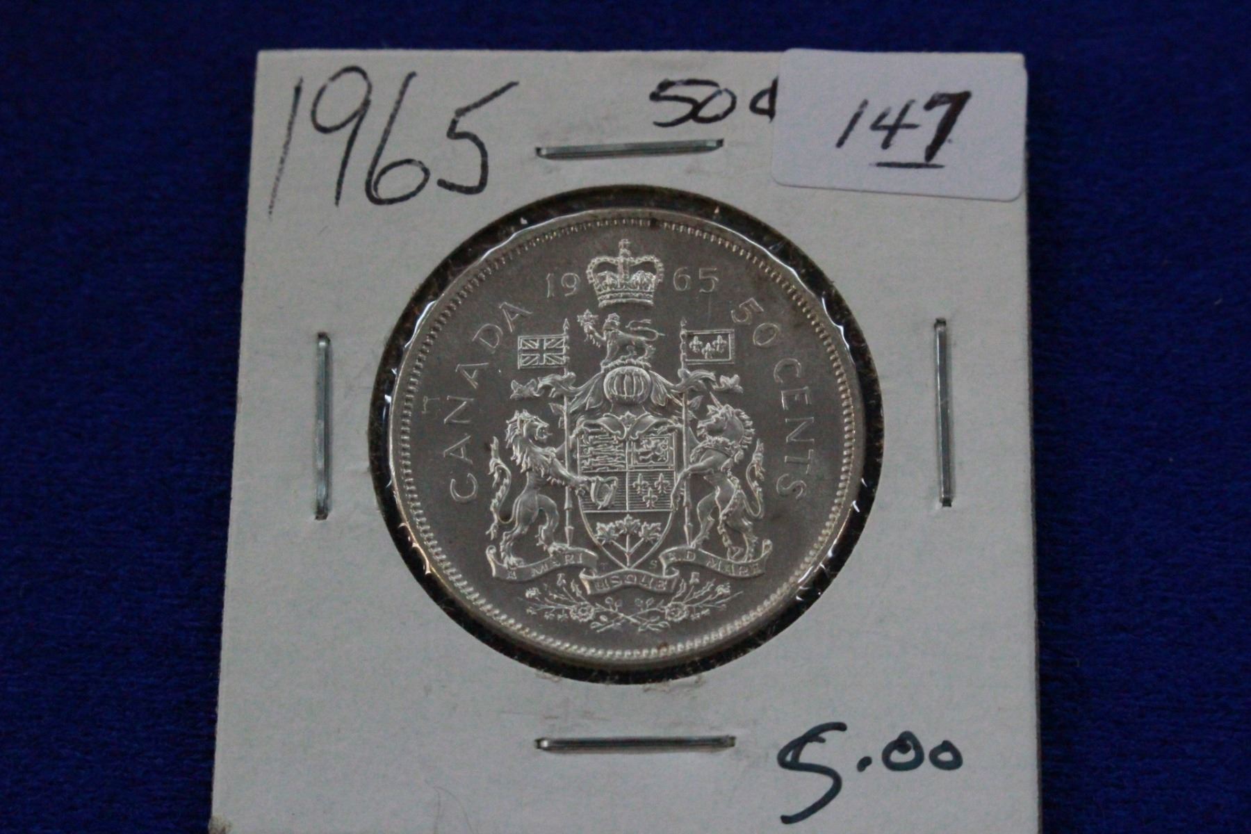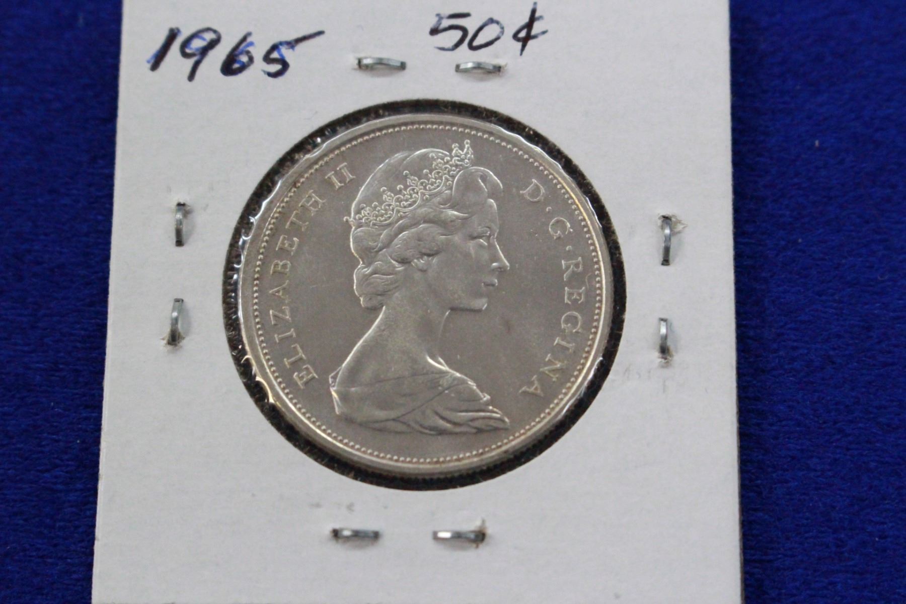 Canada Fifty Cent Coin (1) -,1965, Silver, Unc.