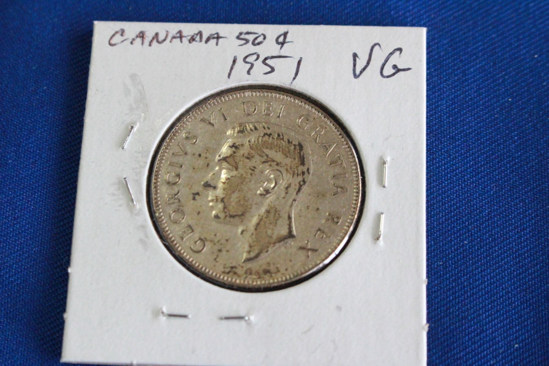 Canada Fifty Cent Coin - 1951; Silver; VG
