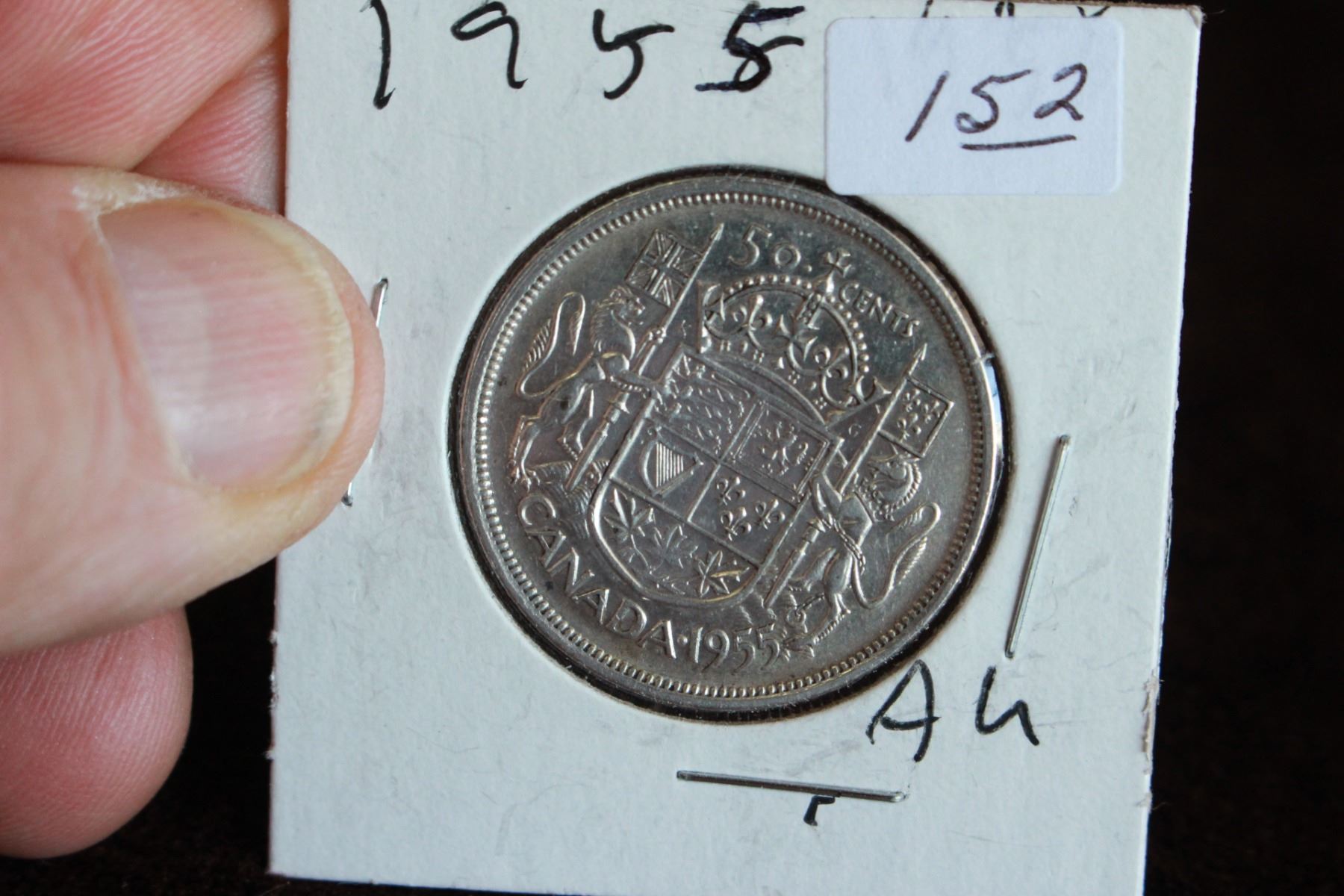 Canada Fifty Cent Coin - 1955, AU, Silver