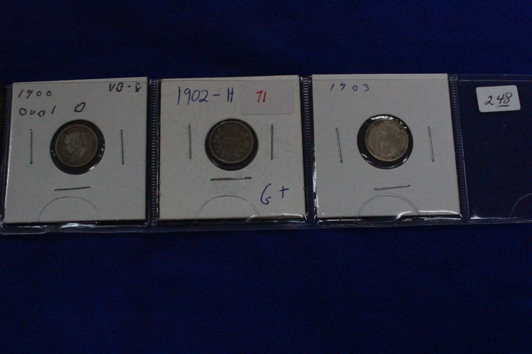 Canada Five Cent Coins (3) - 1900 Oval O, 1902H, 1903; Silver