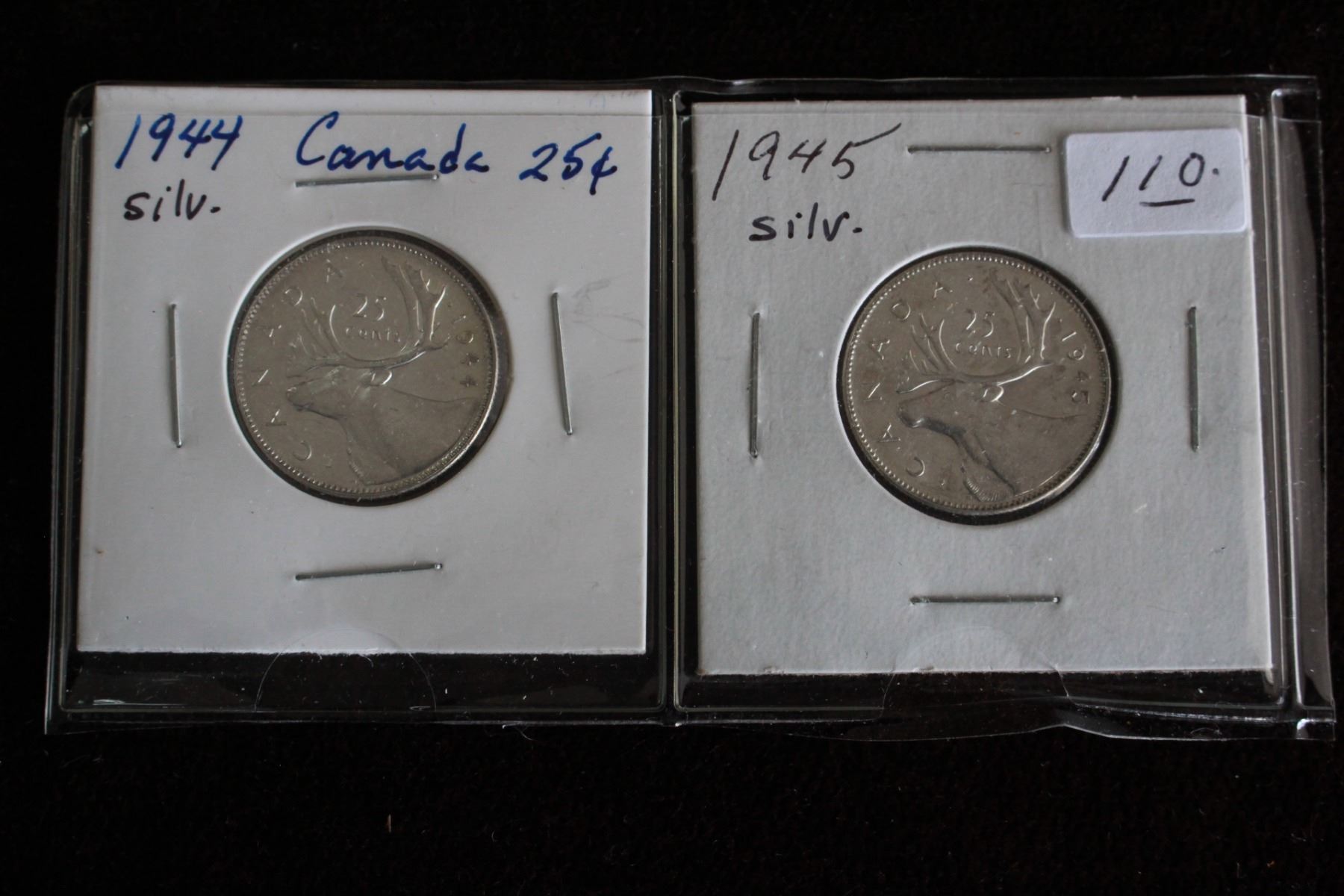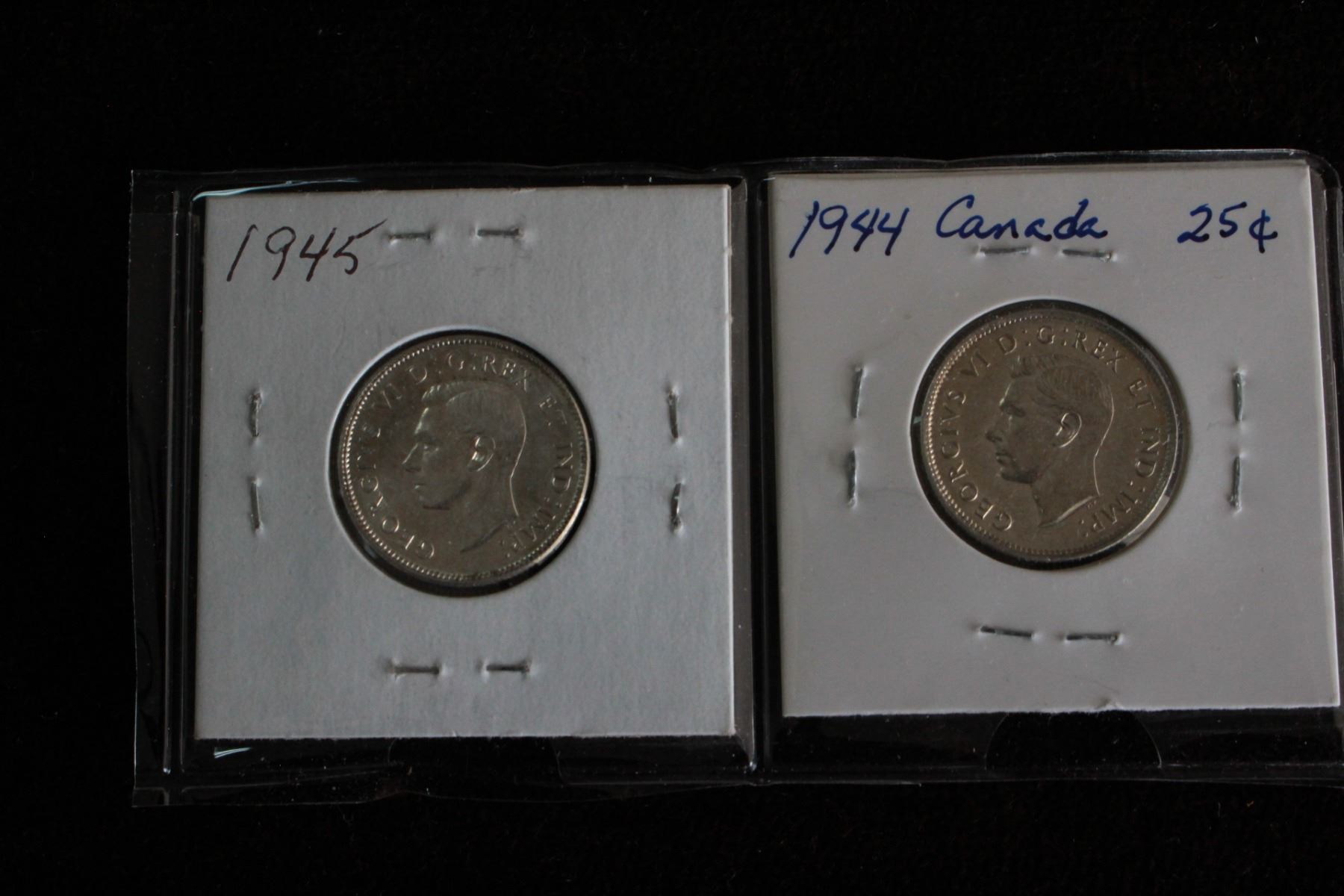 Canada Twenty-five Cent Coins (2) - 1944, 1945; Silver