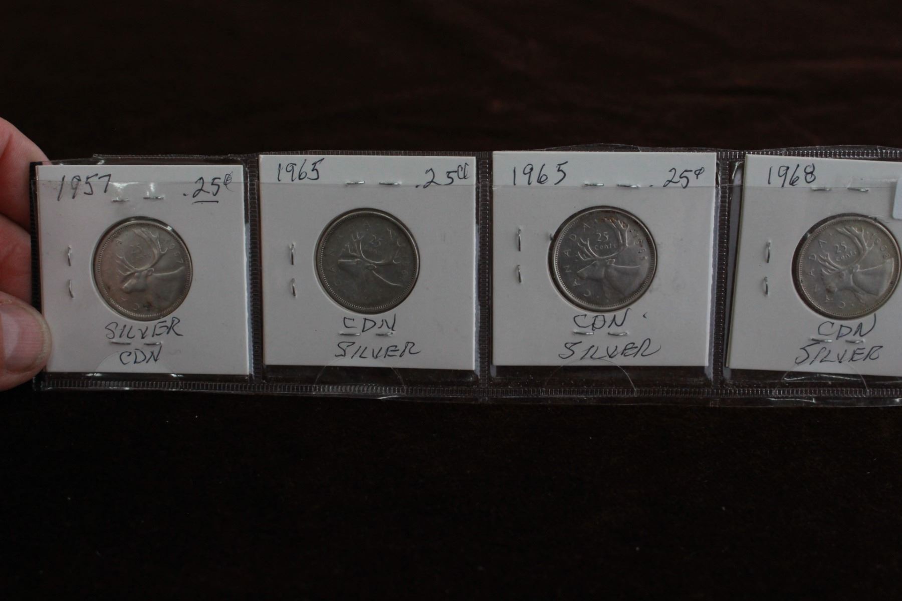 Canada Twenty-five Cent Coins (4) - 1957, 1965, 1965, 1968; Silver