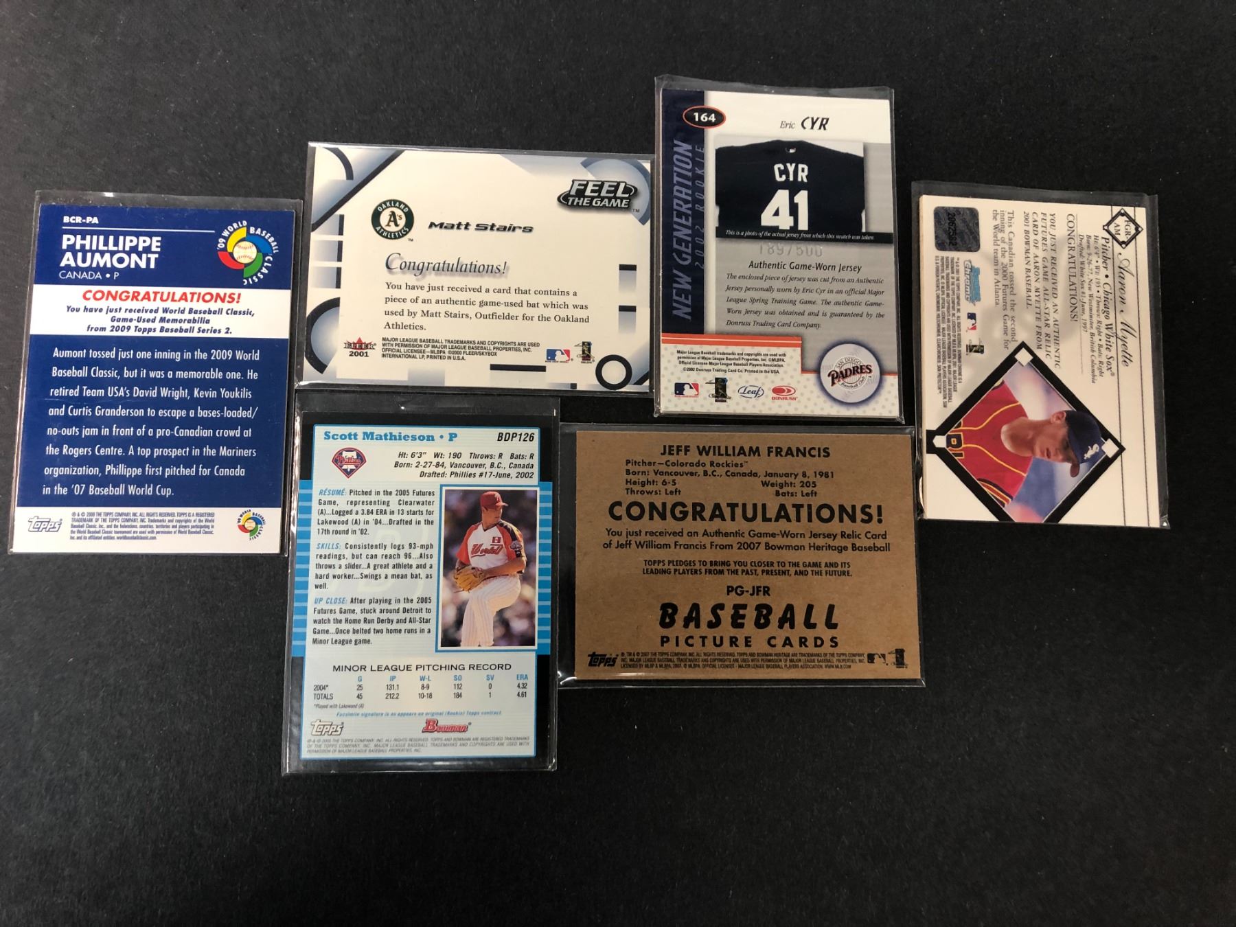 Lot of 6 game used cards of Canadian born baseball players
