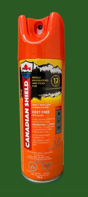 Canadian Shield Insect Repellent Aerosol Deet Free 20% Icaridin 170g. This listing is for one brand new, unopened, factory sealed unit. UPC: 628678899148.