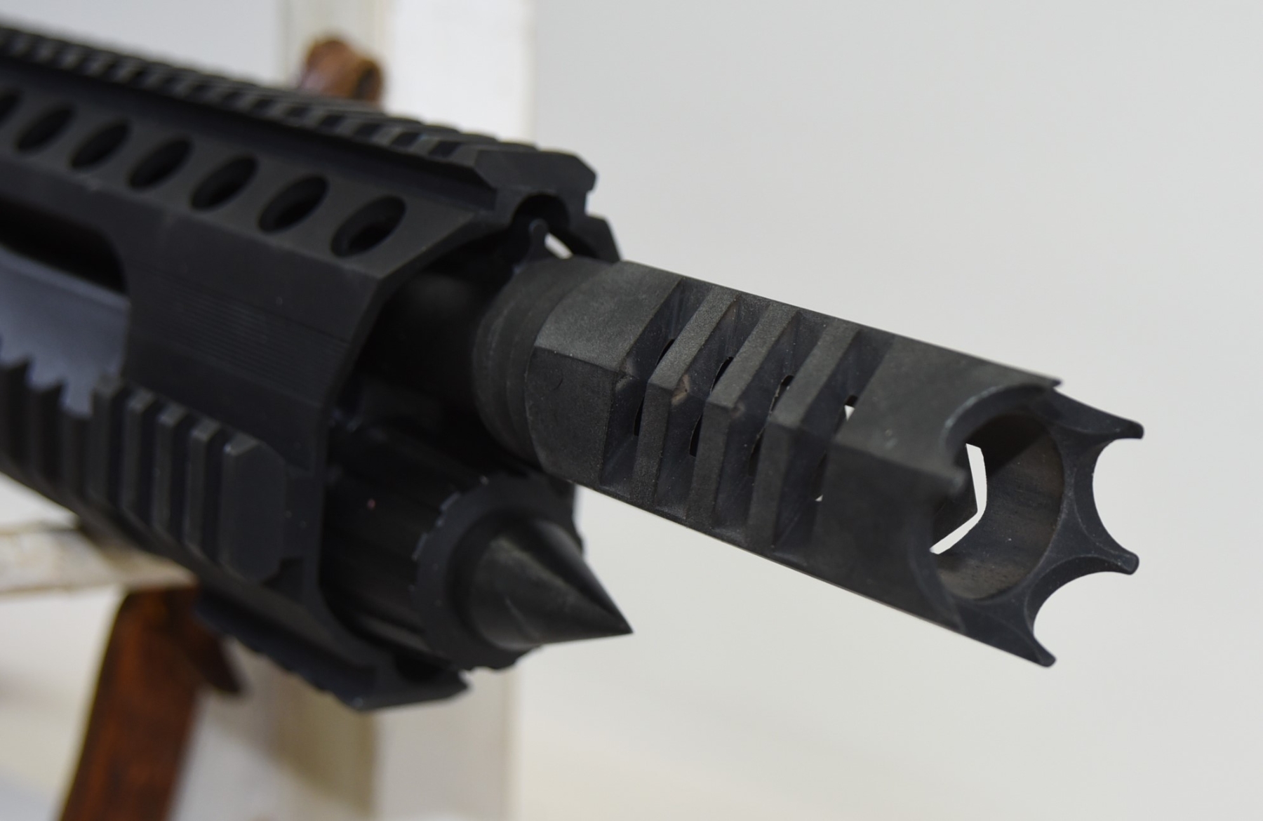 Synthetic stock shows some light scratches, scuffs; condition is very good.