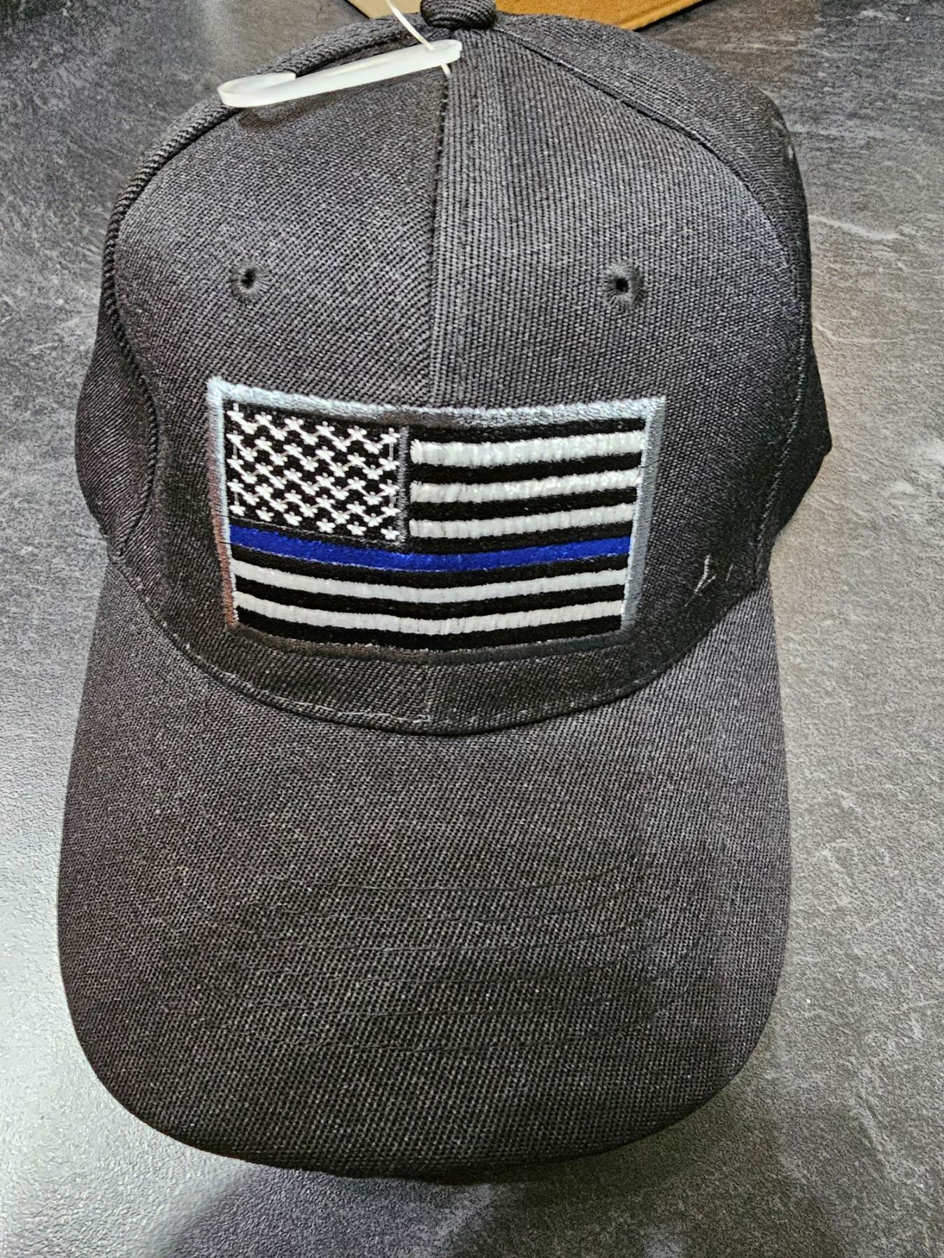 WHITE & BLUE US FLAG EMBROIDERED ON FRONT OF CAP