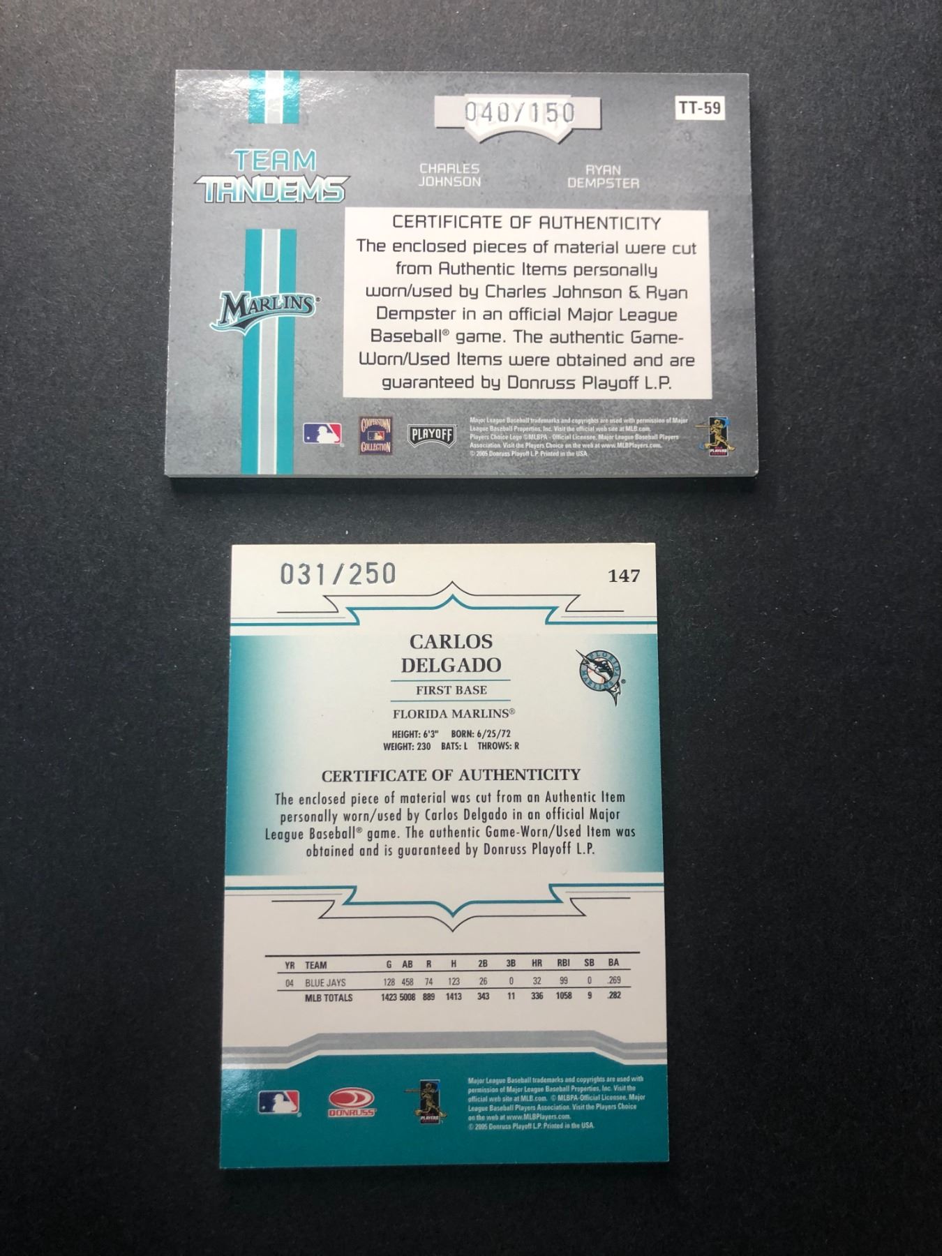 Marlins lot of game used cards