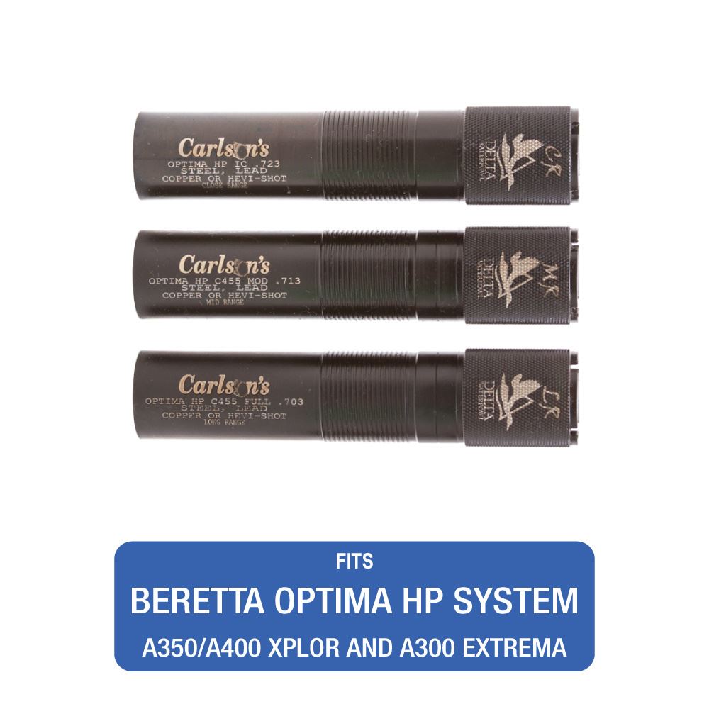 Carlson's Delta Waterfowl Complete Choke Tube Set for steel shot Close/Mid/Long-Range Beretta HP Choke System A400 Xplor SV10 Perennia 12 Gauge. This listing is for one brand new, unopened, factory sealed unit. UPC: 723189650094.