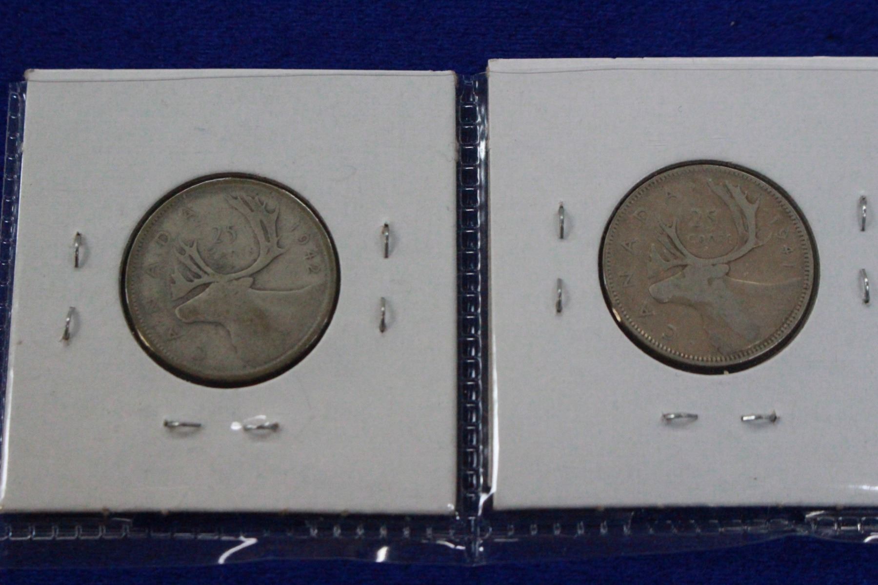 Cda Twenty-five Cent Coins (2) - 1941, VG8 and 1942, VG8