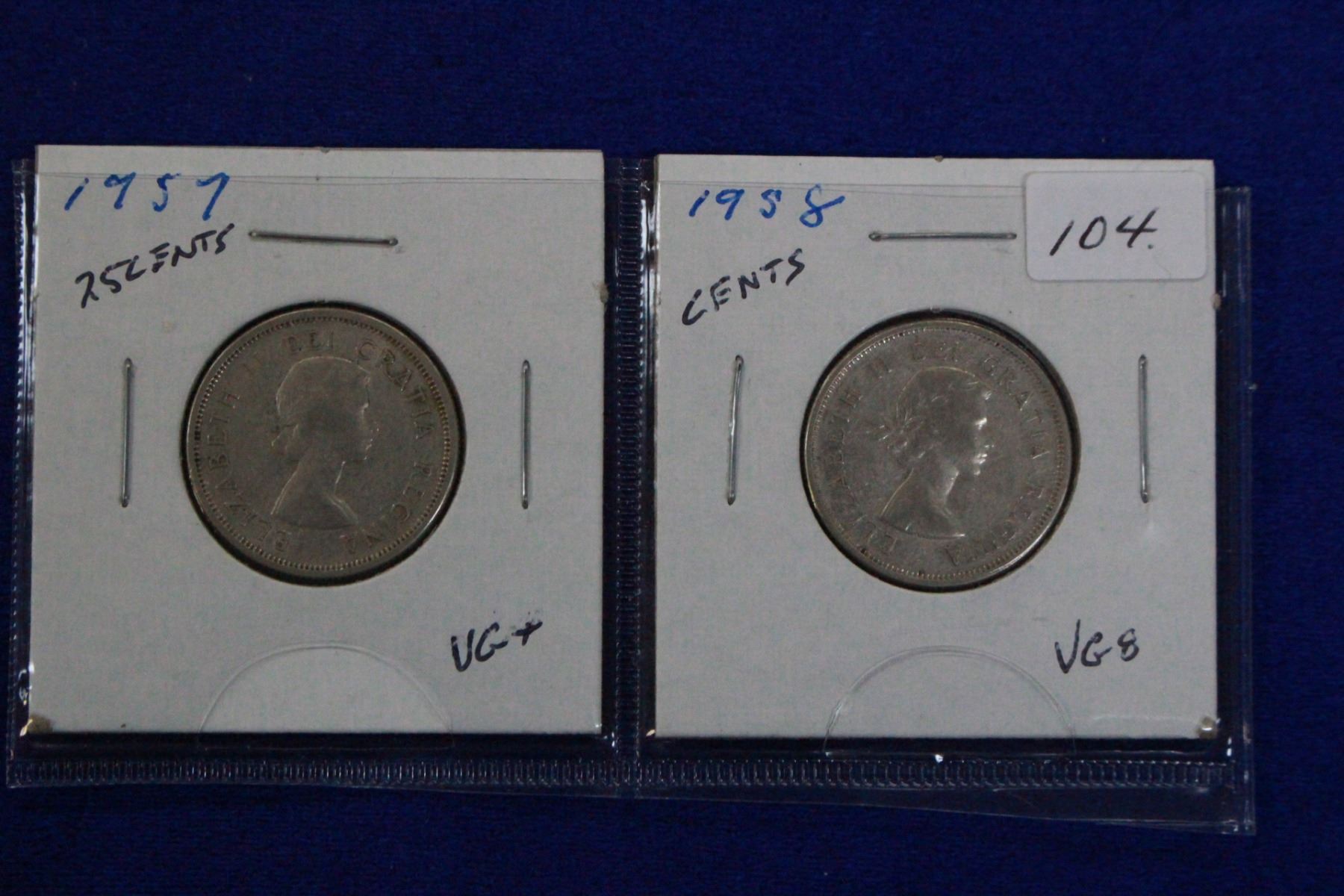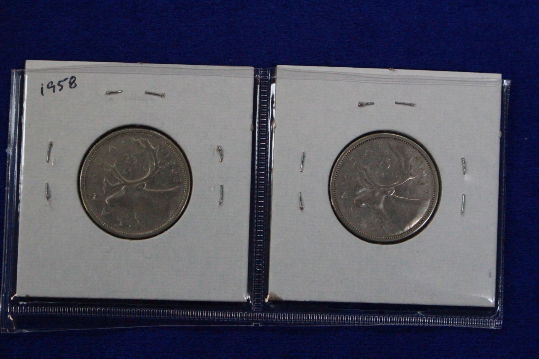 Cda Twenty-five Cent Coins (2) - 1957, VG+ and 1958, VG8
