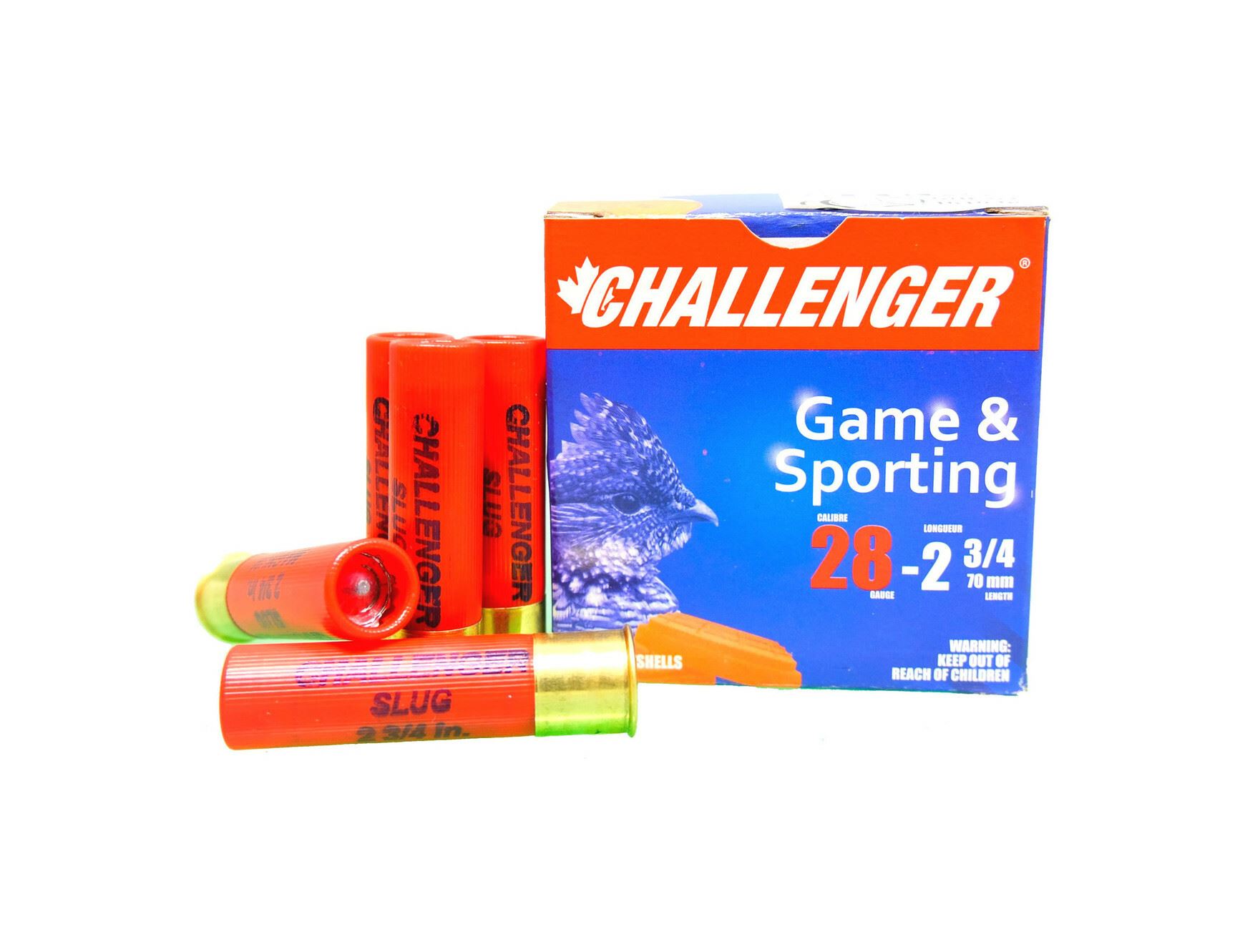 Challenger 28GA 2 3/4" 5/8 oz Slug (25 Rounds) Sku 400This Lot is for One Brand new, sealed Unit. UPC : 773622004007