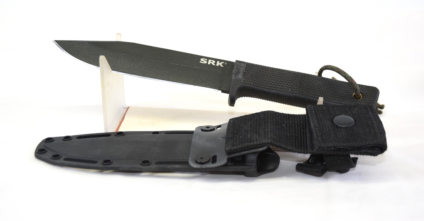 9.5" OVERALL / 5" BLADE / 4MM THICK/SK-5 W/BLACK TUFF-EX™ FINISH STEEL / 4.5" KRAY-EX™ HANDLE/SECURE-EX™ SHEATH