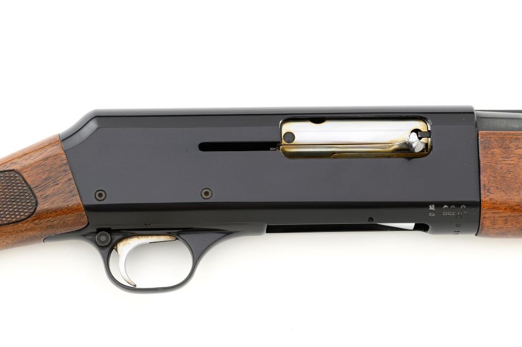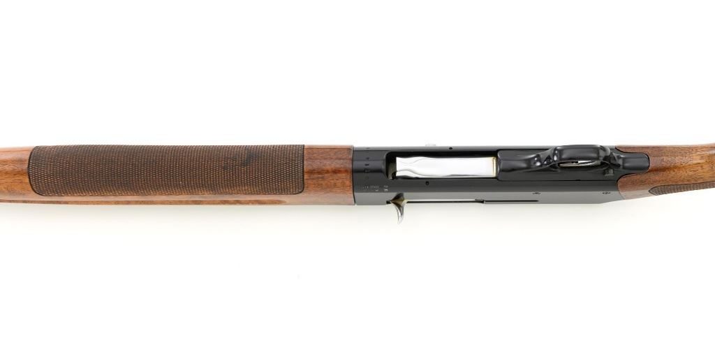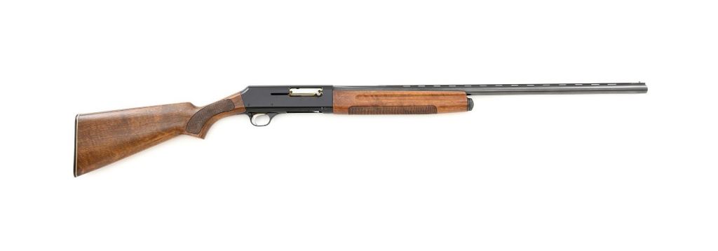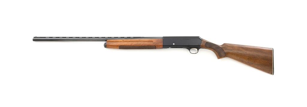 Colt Standard Model Semi-Automatic Shotgun, #C071446, 20 ga., 26" vent rib barrel is marked IC but measures CYL, chamber is 2-3/4". Auto-loading action is adapted from the earlier Franchi short recoil action, which was based upon the reliable Remington model 11-48 line of guns. Alloy receiver is a deep blue, unengraved except for "Colts PT. F.A. Mfg. CO. Hartford, CT, USA. Made in Italy". Slender finger groove forend and pistol grip buttstock are of "B" grade oil-finished walnut, with hand checkering at 20 LPI, silver "Colt" White-Line buttplate. Stock dimensions are 14-1/4" x 1-5/8" x 2-1/2". Mfgd in Italy for Colt in approx. 1966. Condition of the gun appears new and unfired, with very few handling marks to the wood, sharp checkering, little wear to the bolt face or action, which closes very tight and cycles correctly; bore is mirror bright. Really a perfect gun for skeet or upland bird hunting. From the award winning Mike Lawler Colt shotgun collection. Est.: $500-$800. (C&R)