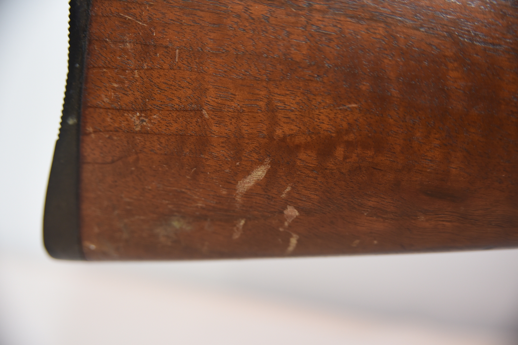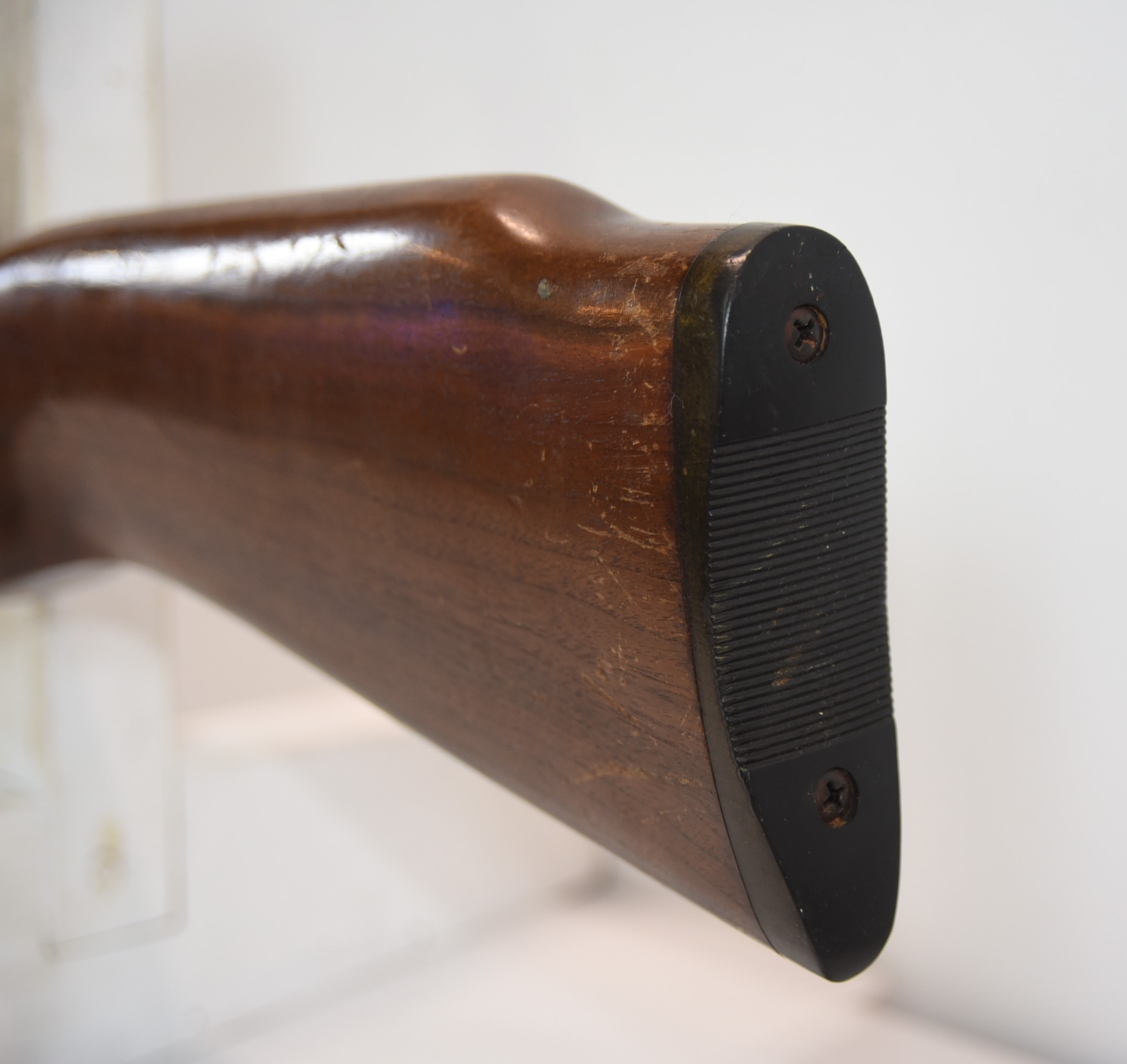 Wood stock shows some scratches, scuffs, and dents in various areas; condition is good.
