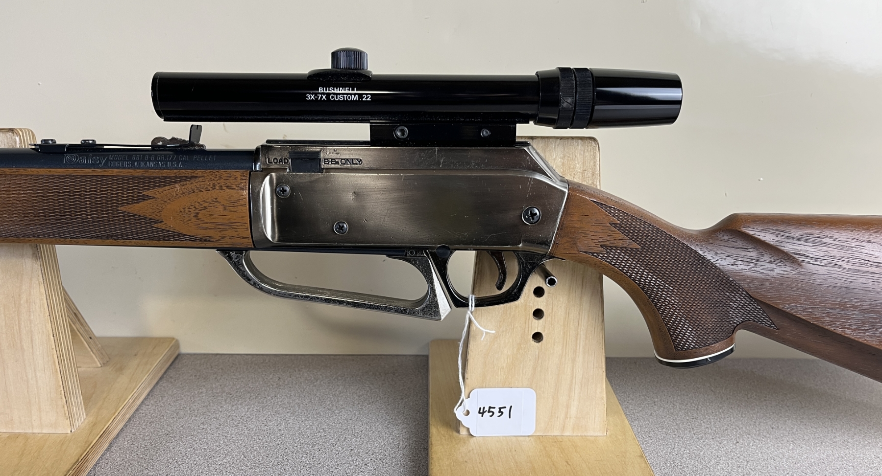 CONDITION: G OVERALL INCL BORE. SPECS: 21.5IN BBL W/ IRON SIGHTS. EXTRAS: BUSHNELL 3-7X SCOPE. DUPLEX CROSSHAIR RETICLE. CLEAR LENS. S/N: G702136.