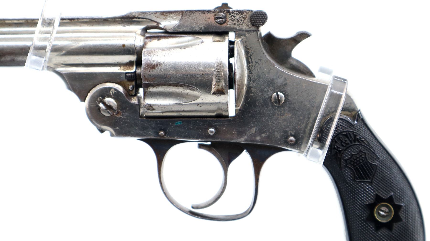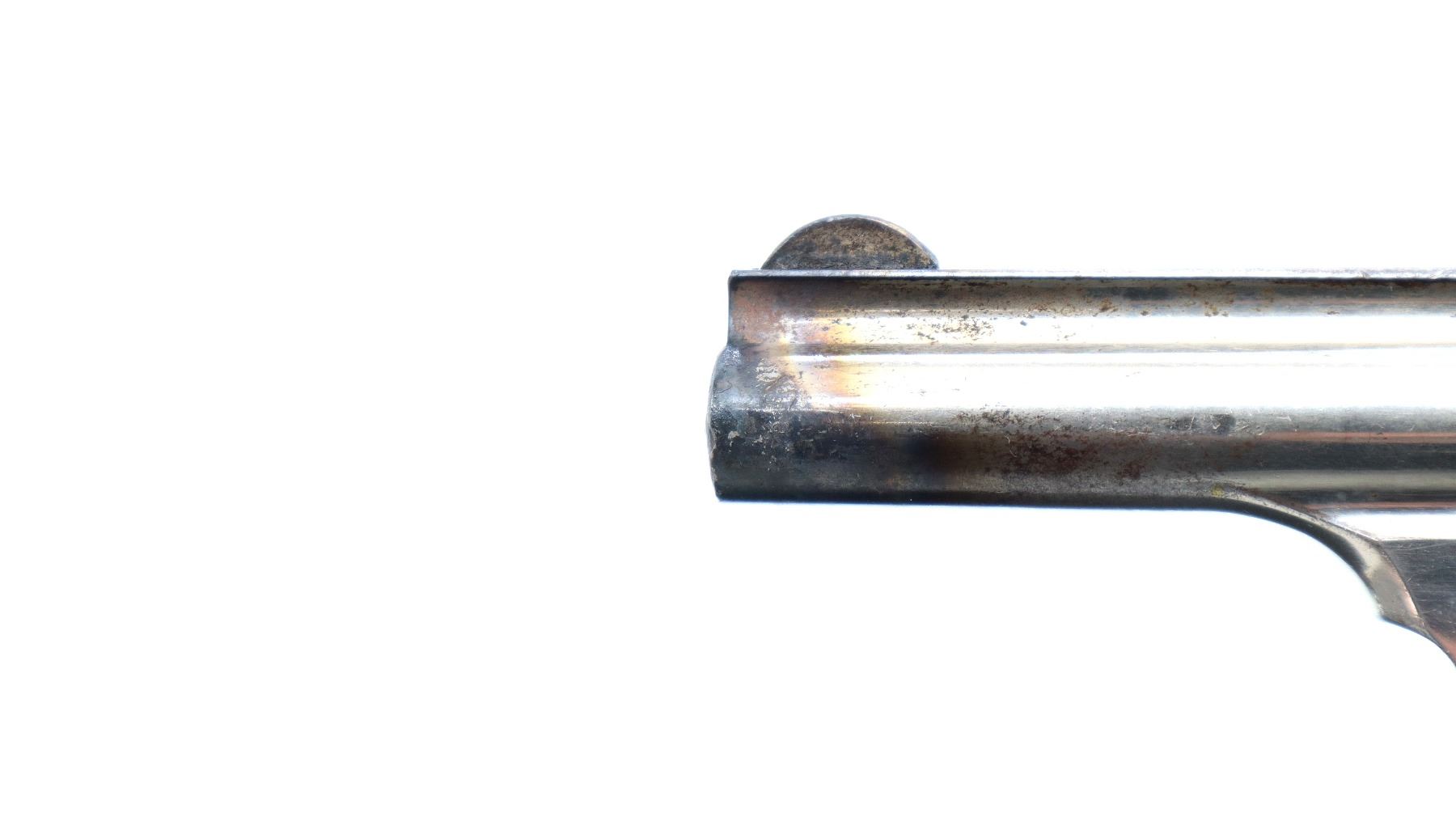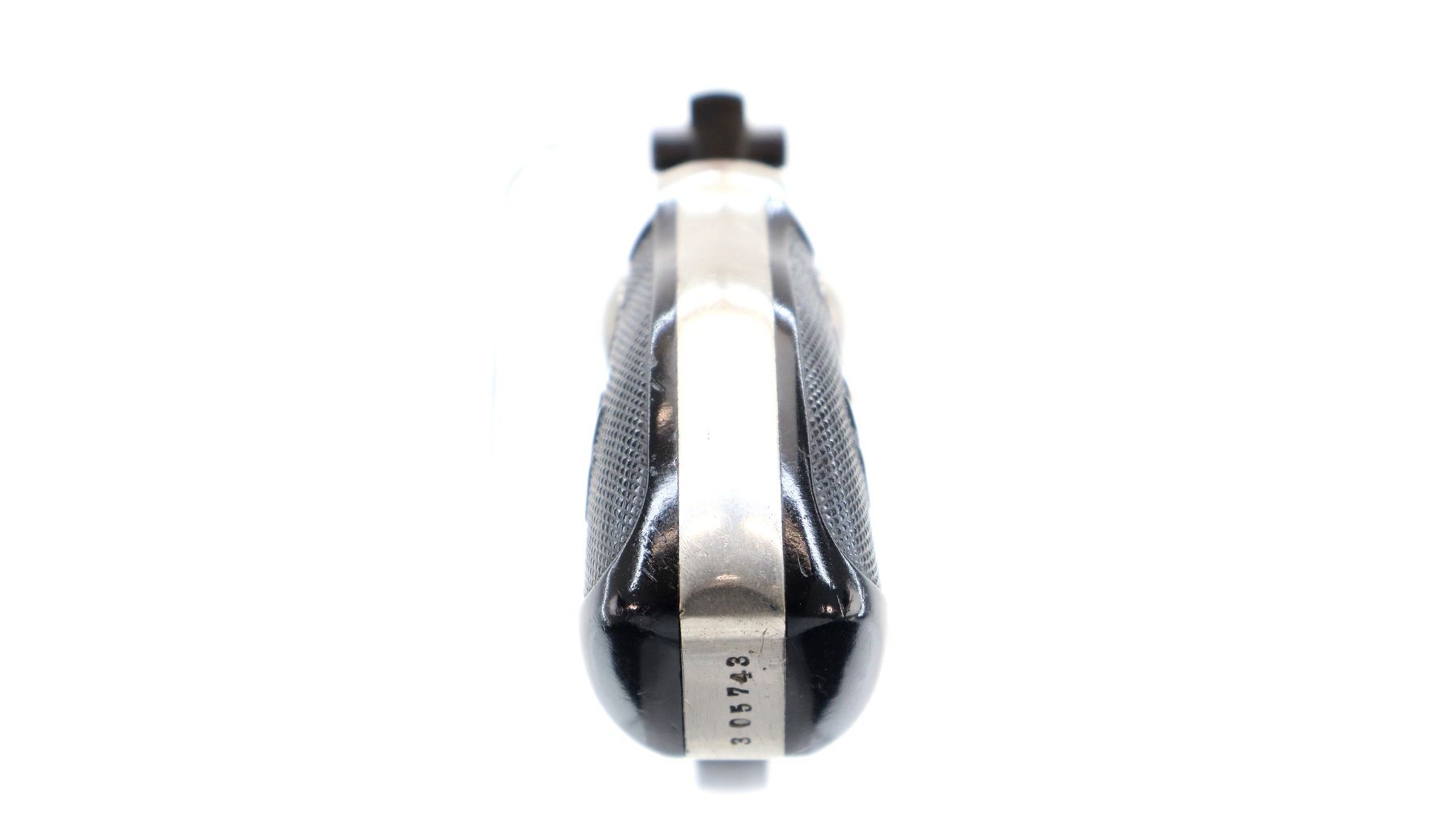 Main Description: This deactivation has 3 visible welds ,hammer functions cannot be disassembled. Blade front sight, u notched rear sight, Nickel finish, round barrel with solid rib, fluted cylinder. Two piece checkered black polymer grips with FW logo