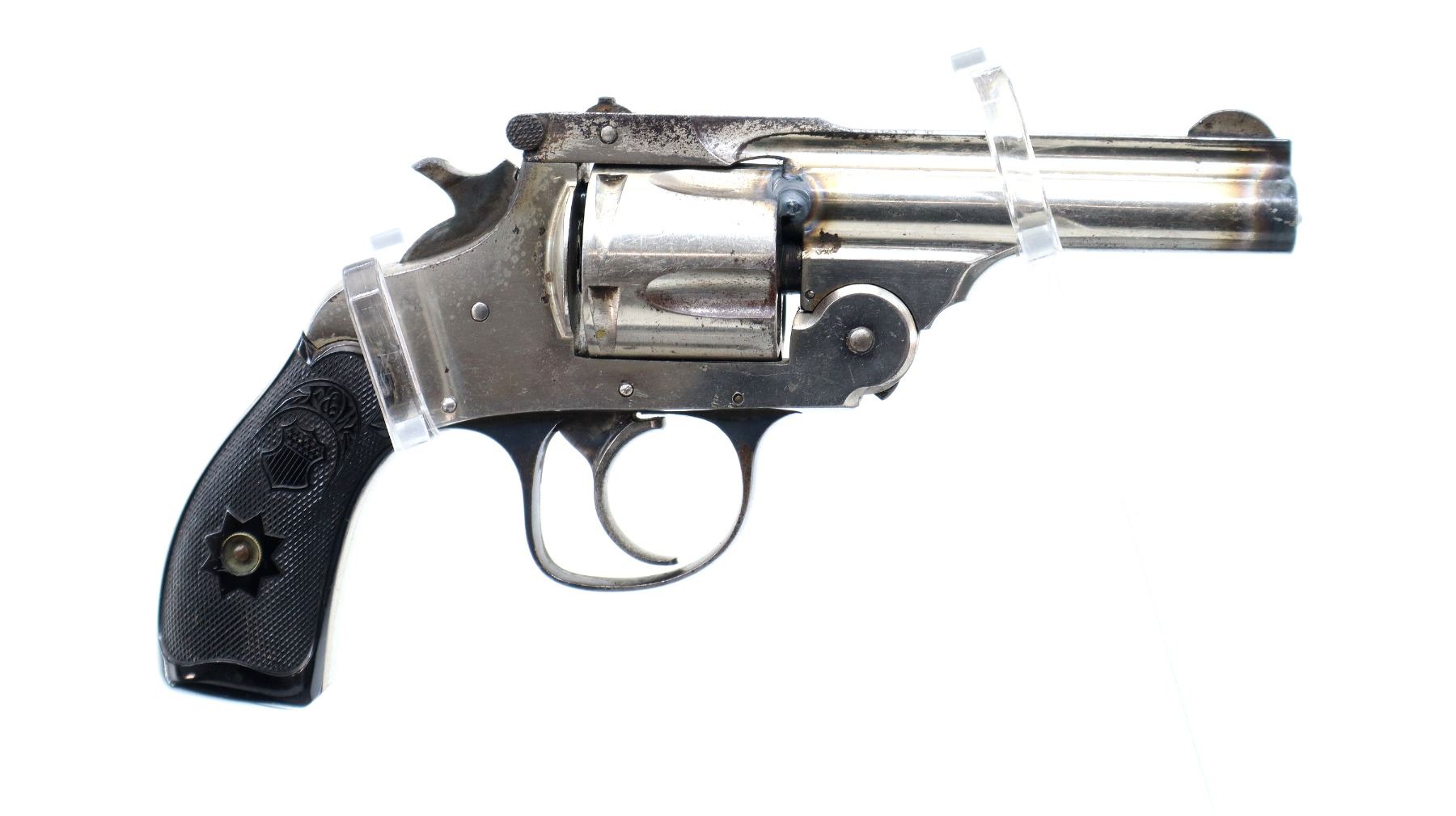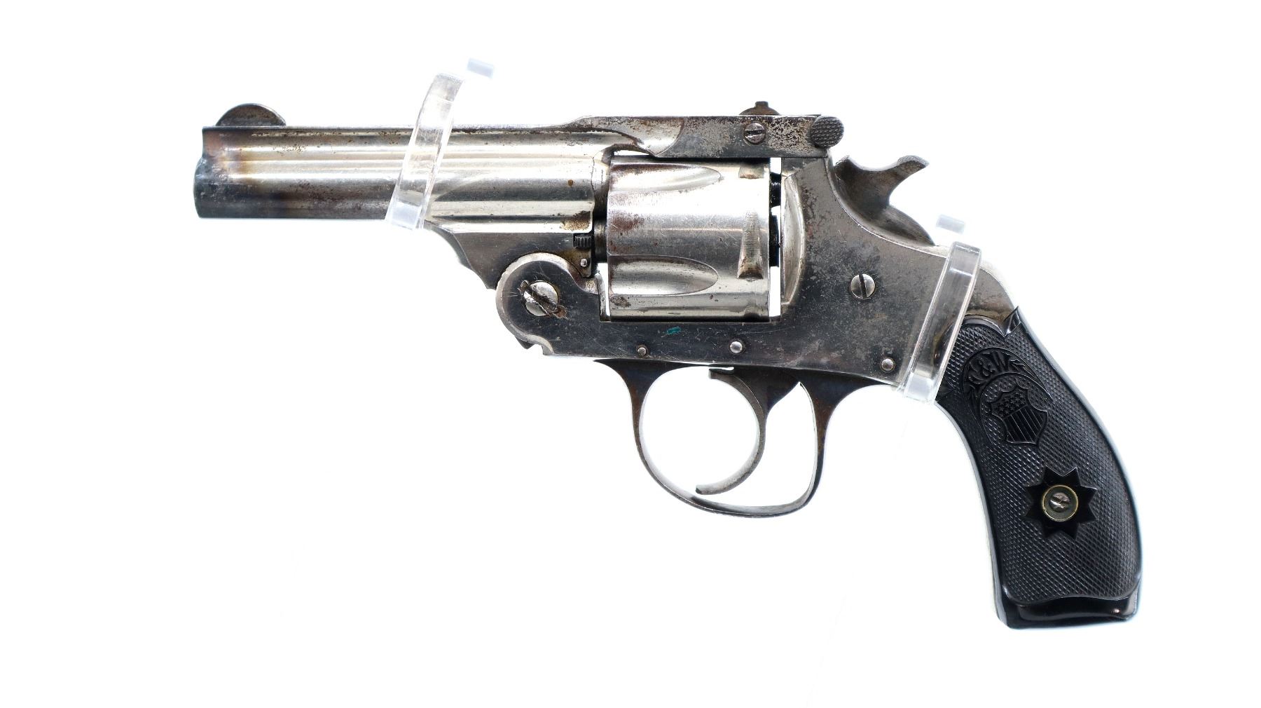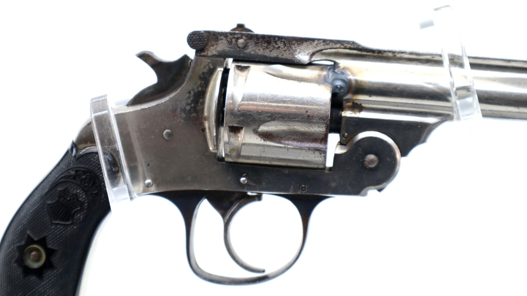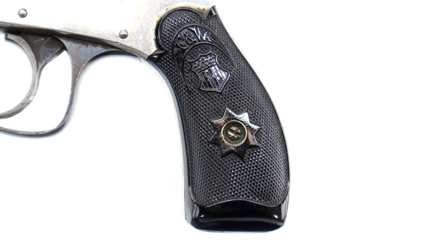 Main Description: This deactivation has 3 visible welds ,hammer functions cannot be disassembled. Blade front sight, u notched rear sight, Nickel finish, round barrel with solid rib, fluted cylinder. Two piece checkered black polymer grips with FW logo