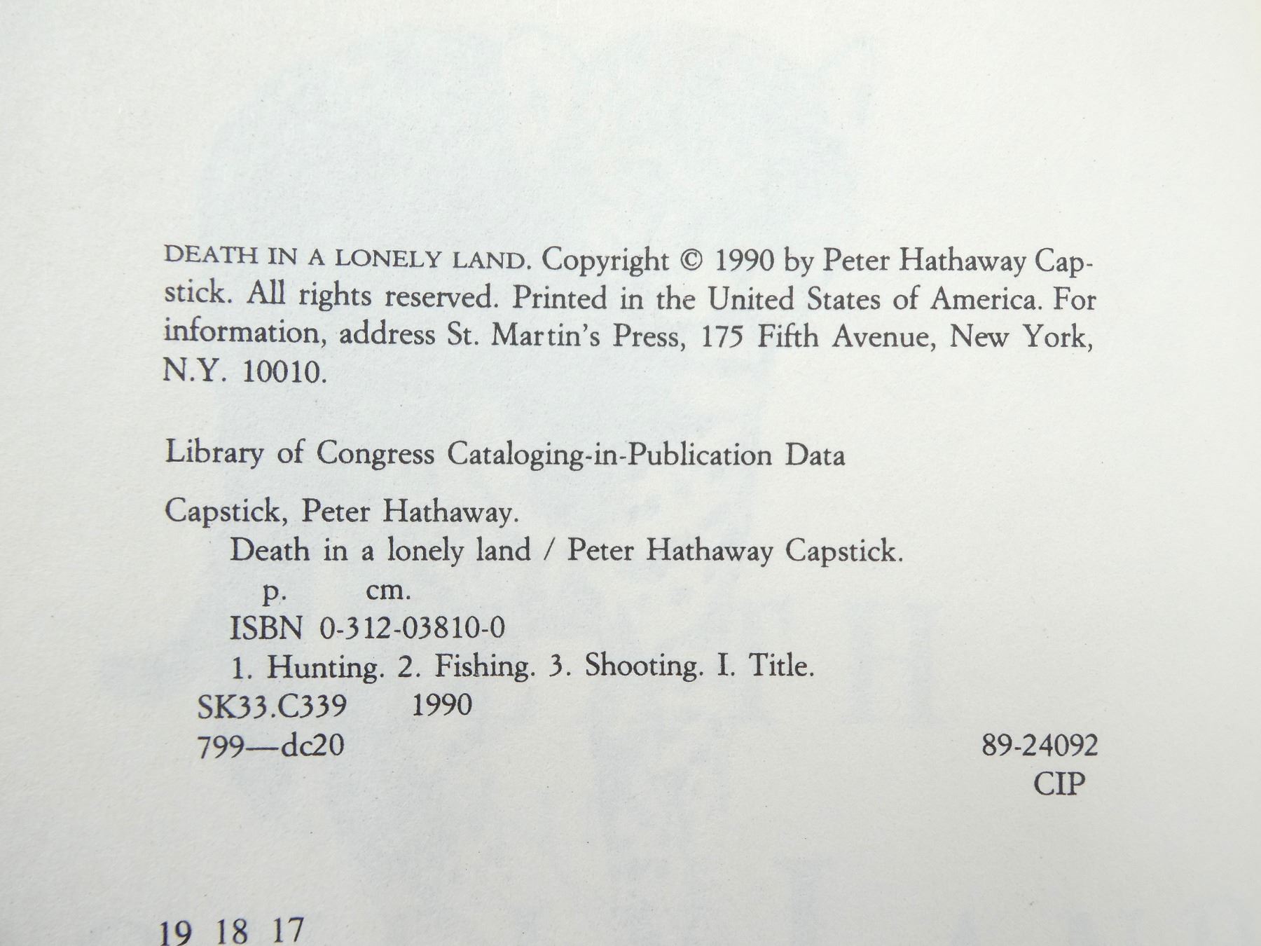 (1) BY PETER HATHAWAY CAPSTICK, HARD COVER WITH DUST COVER, ISBN: 0-312-03810-0. SEE PHOTOS.