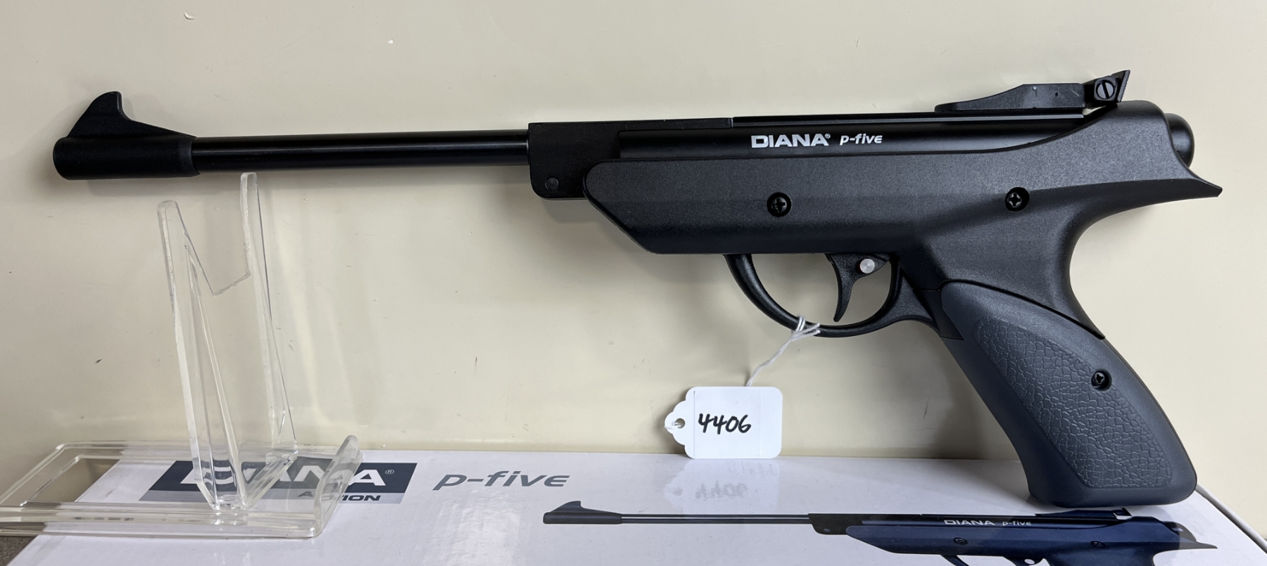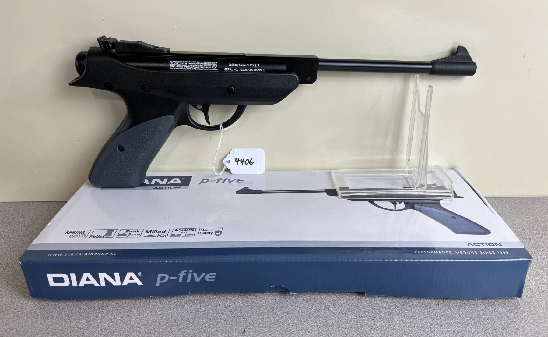 CONDITION: VG OVERALL INCL BORE. SPECS: 8-3/4IN BBL WITH IRON SIGHTS. <500FPS. EXTRAS: ORIGINAL BOX AND MANUAL. S/N: 1722210145035727E
