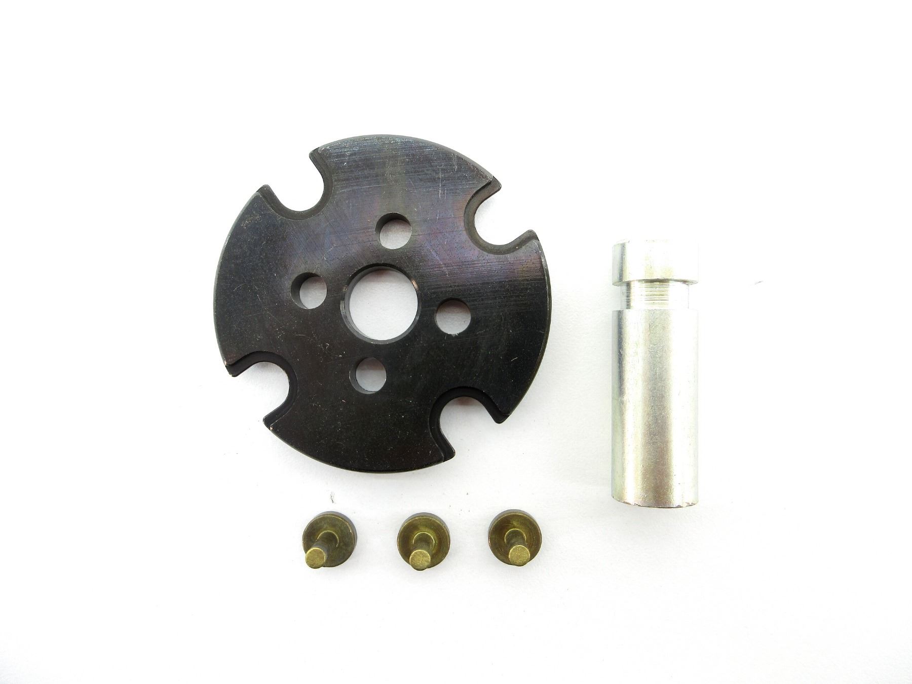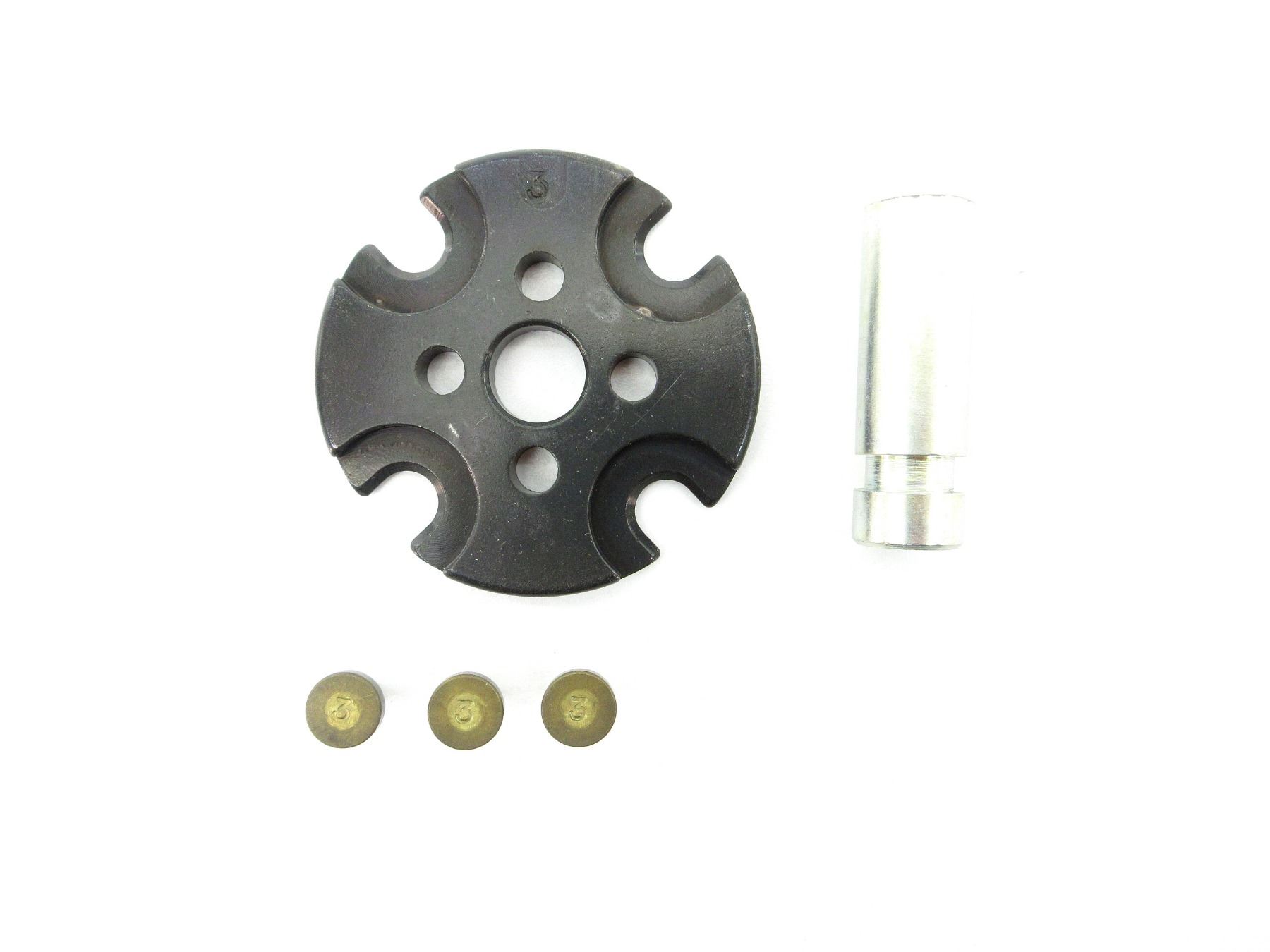 (1) .223 CONVERSION KIT WITH THREE BRASS BUTTONS, SHELL PLATE & POWDER FUNNEL. SEE PHOTOS.