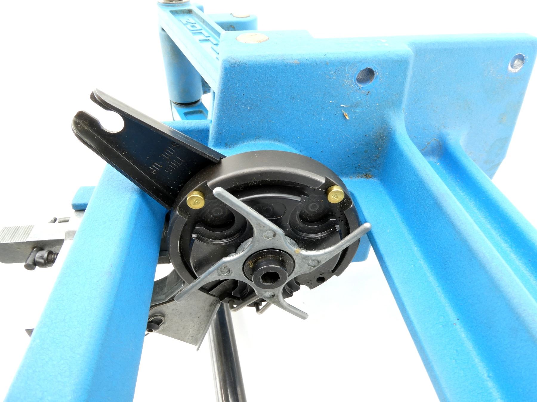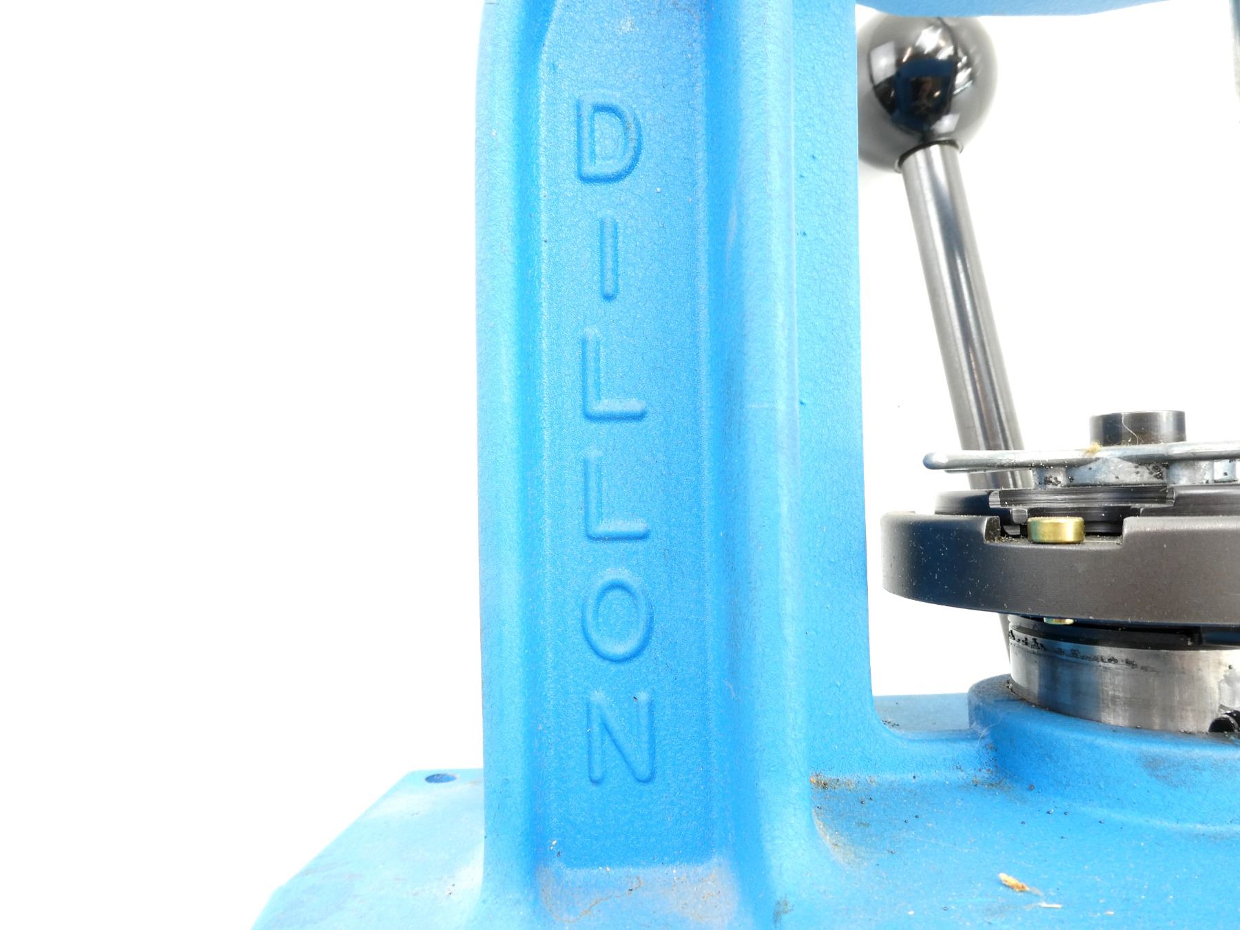 LOT INCLUDES; (1) DILLON RL550 PRESS, MAY REQUIRE ADJUSTMENTS AND/OR MAY NOT BE COMPLETE, WITH (1) POWDER MEASURE WITH POWDER BAR INSTALLED, (1) .45 LONG COLT / .455 CONVERSION KIT INSTALLED, C SHELL PLATE, THREE #4 BRASS BUTTONS, (1) POWDER DIE WITH POWDER FUNNEL FROM CONVERSION KIT INSTALLED, (1) SPARE POWDER BAR WITH SPACER, (1) BLUE PLASTIC CARTRIDGE BIN WITH BRACKET, (1) PRIMER CATCH TRAY, (1) PRIMER SENSOR INSTALLED, TESTED (WORKS), (1) BRASS PRIMER TRAY, ETC. SEE PHOTOS.