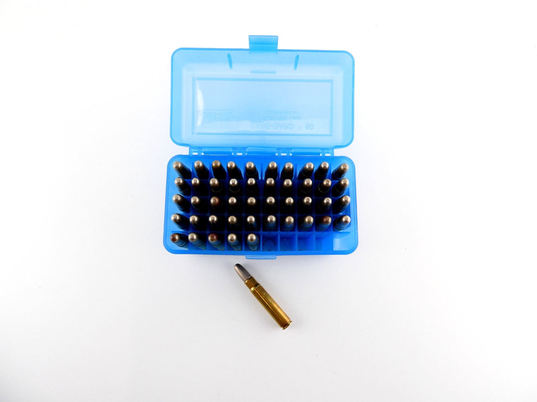 LOT INCLUDES; APPROX. (46) RNDS, FMJ, (1) CASE-GARD H-50 PLASTIC AMMO BOX.