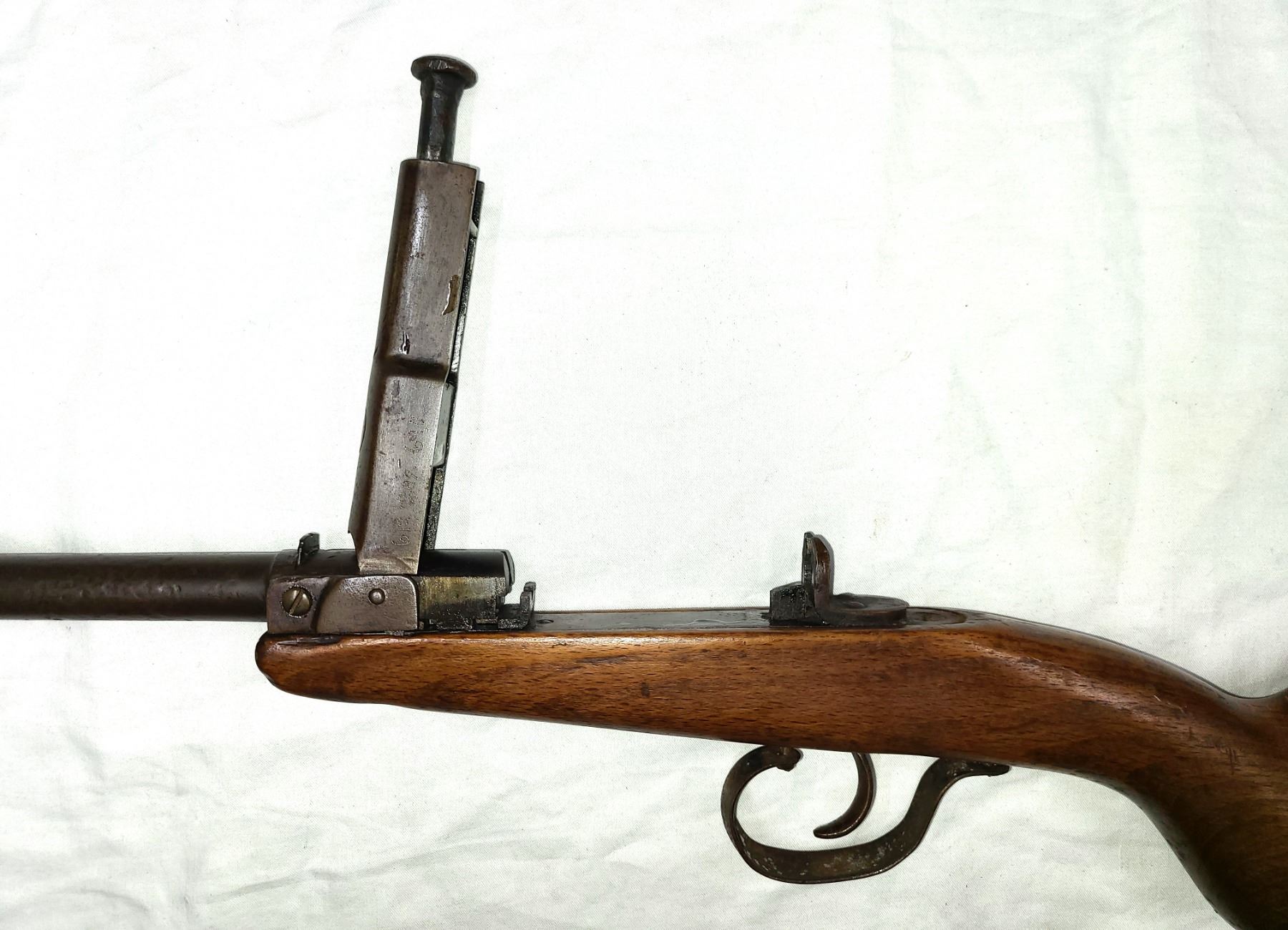 The flip-up breech block type is a Warnant action, used mostly in Flobert rifles.
