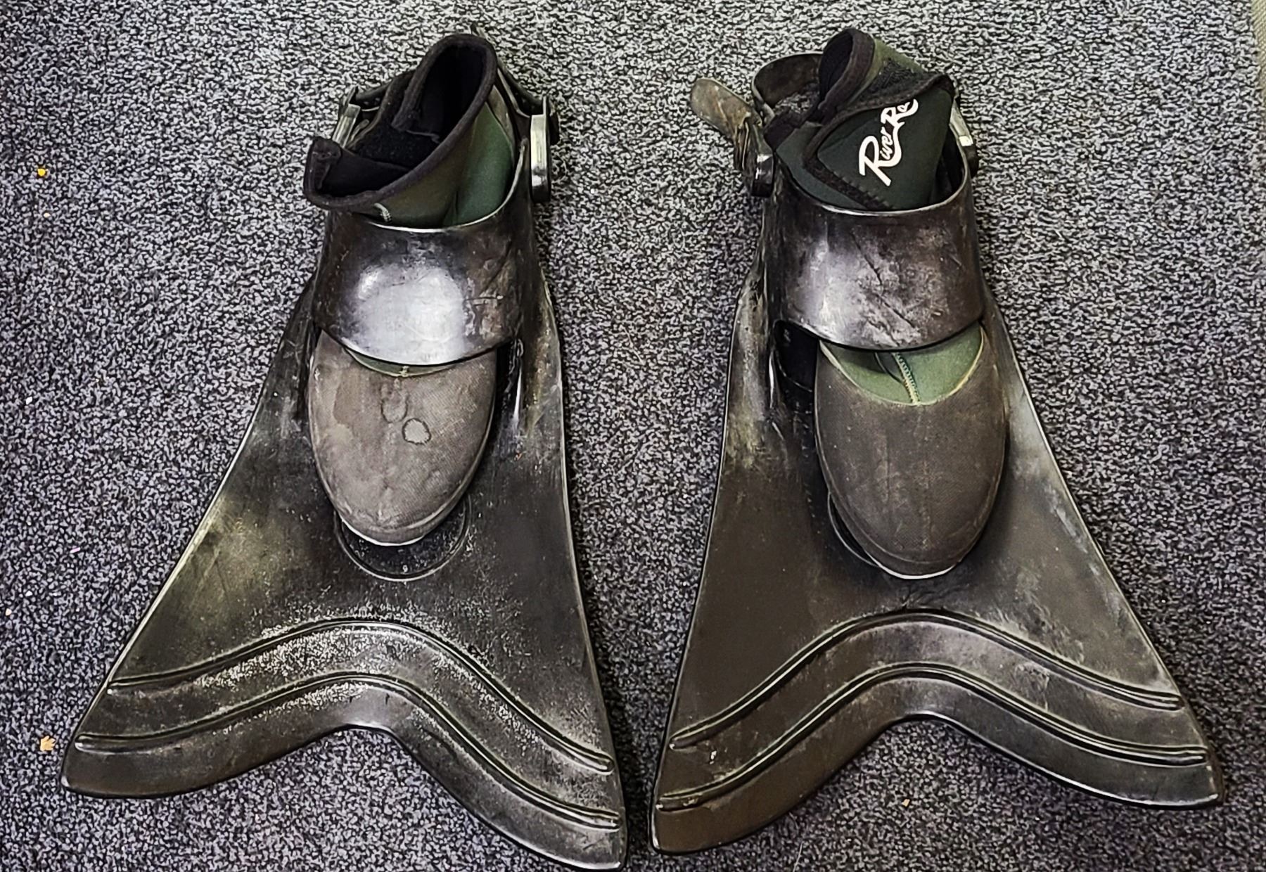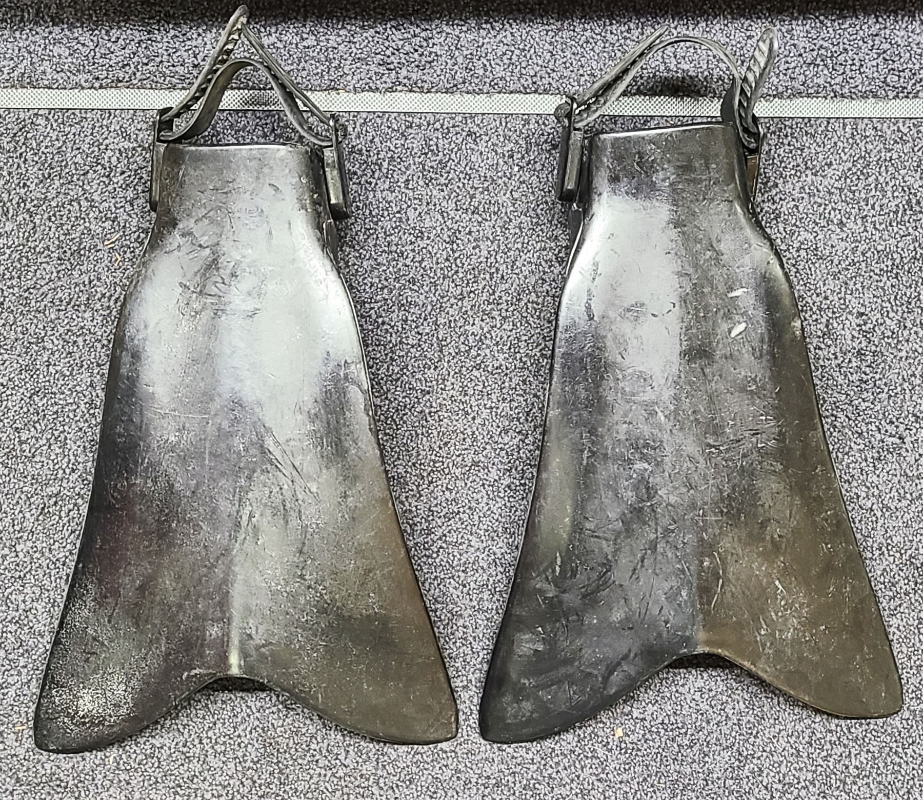The boots are marked Size L and the Flippers are unmarked but appear XL in size.