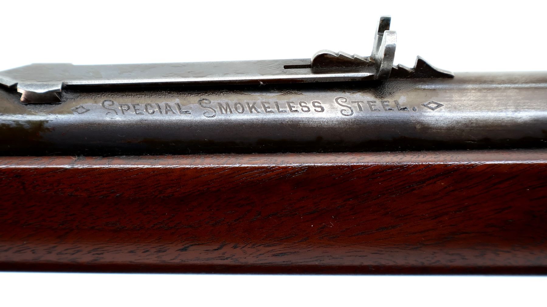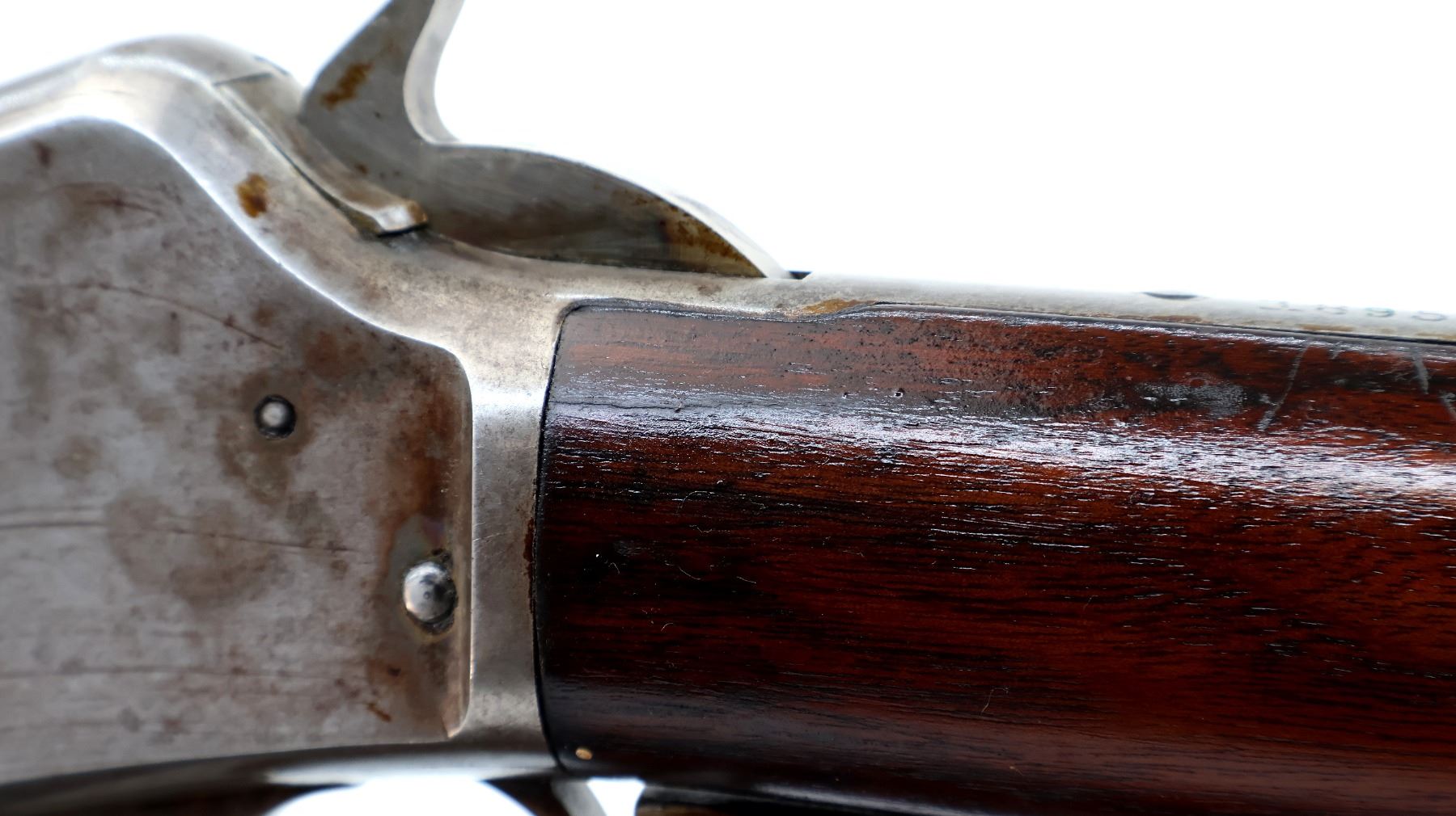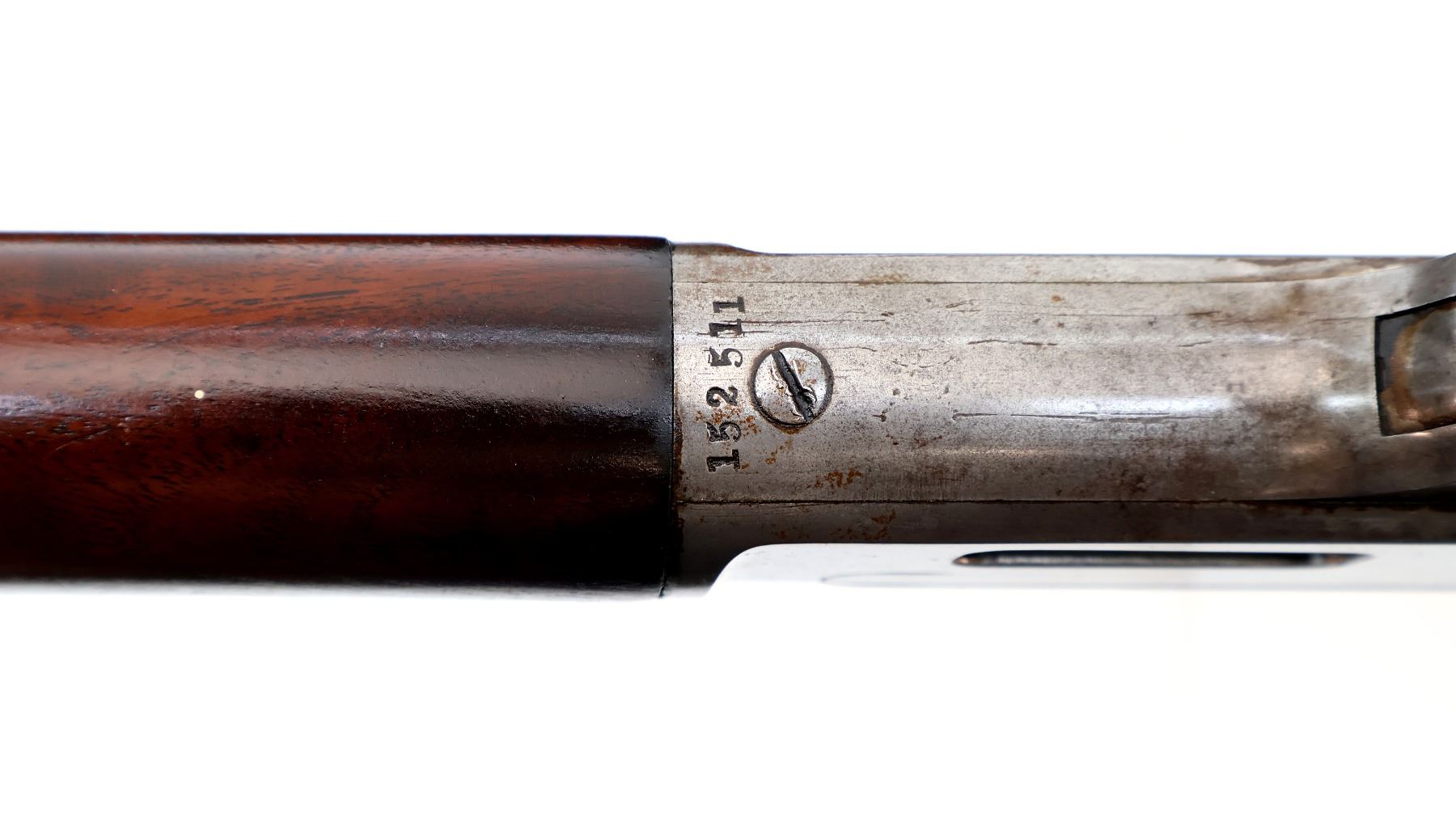 Wear: Metal finish shows some light rust speckles, scratches, handling marks and wear. Stocks show some marks, scratches and wear.