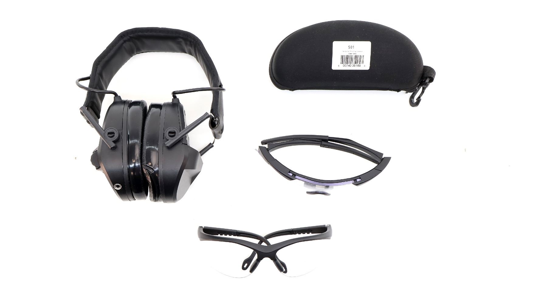 EARMOR OVER-THE-HEAD ELECTRONIC HEARING PROTECTION AND SAFETY GLASSES LOT