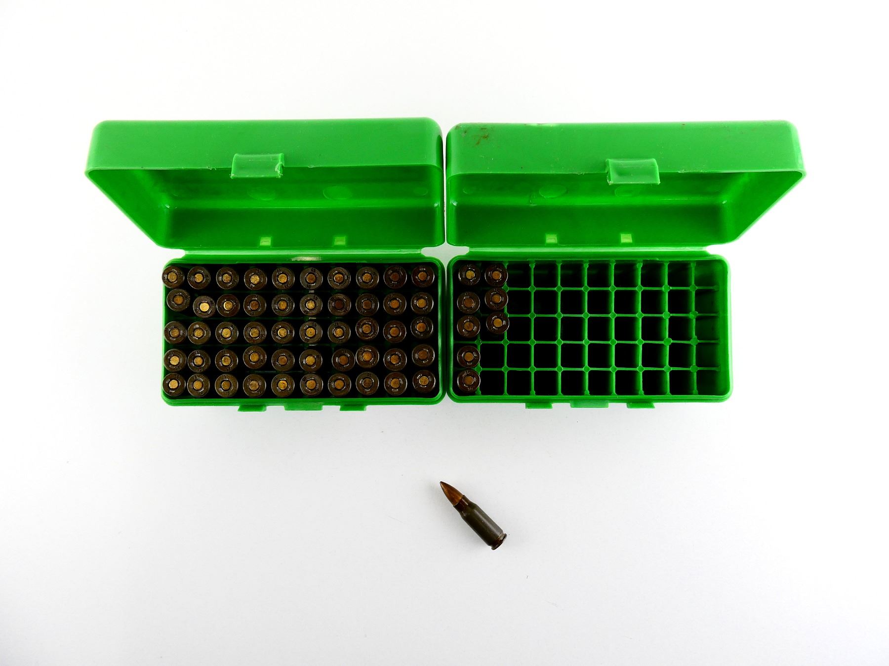 LOT INCLUDES; APPROX. (59) RNDS, FMJ, (2) PLASTIC AMMO BOXES.