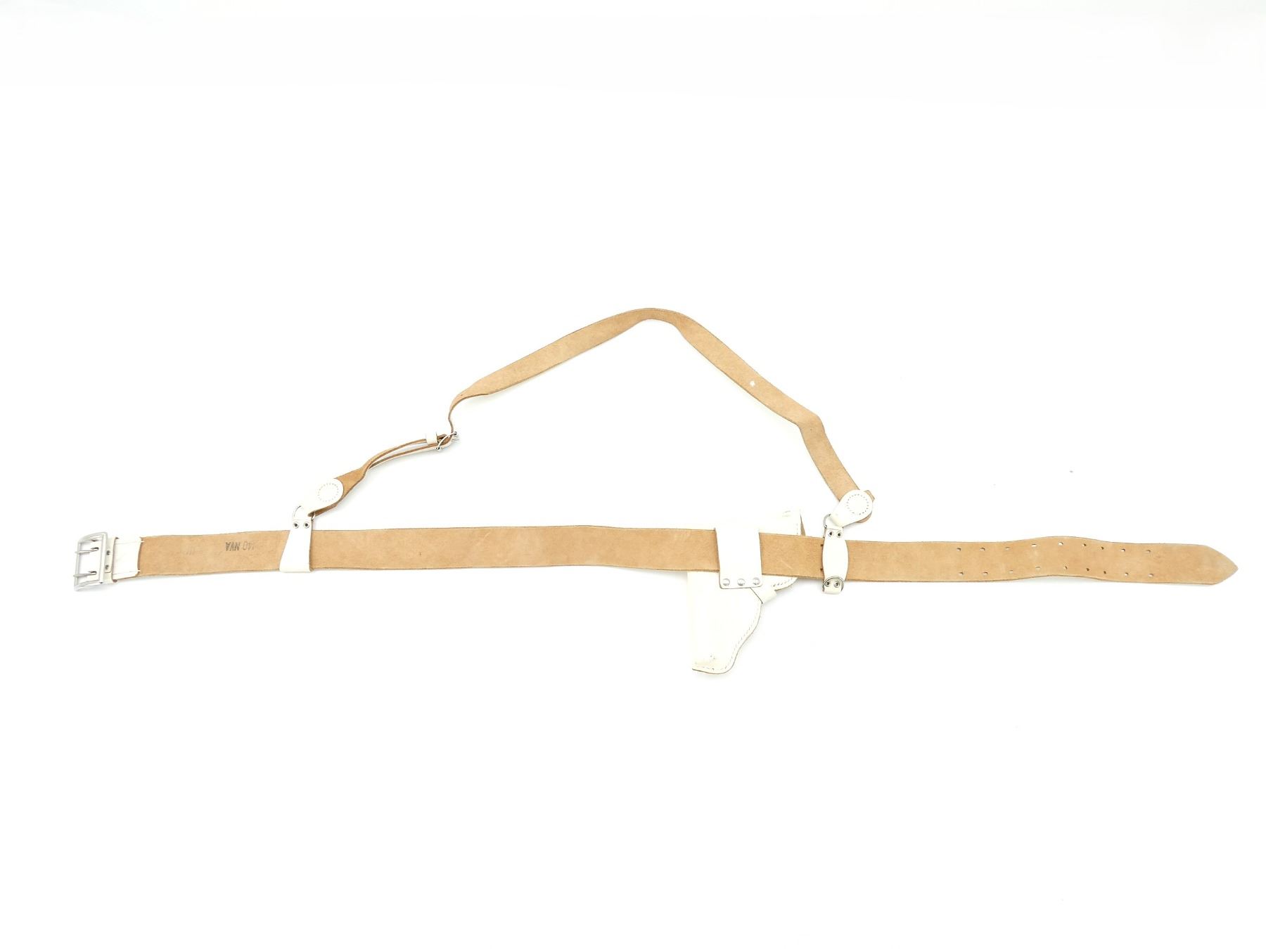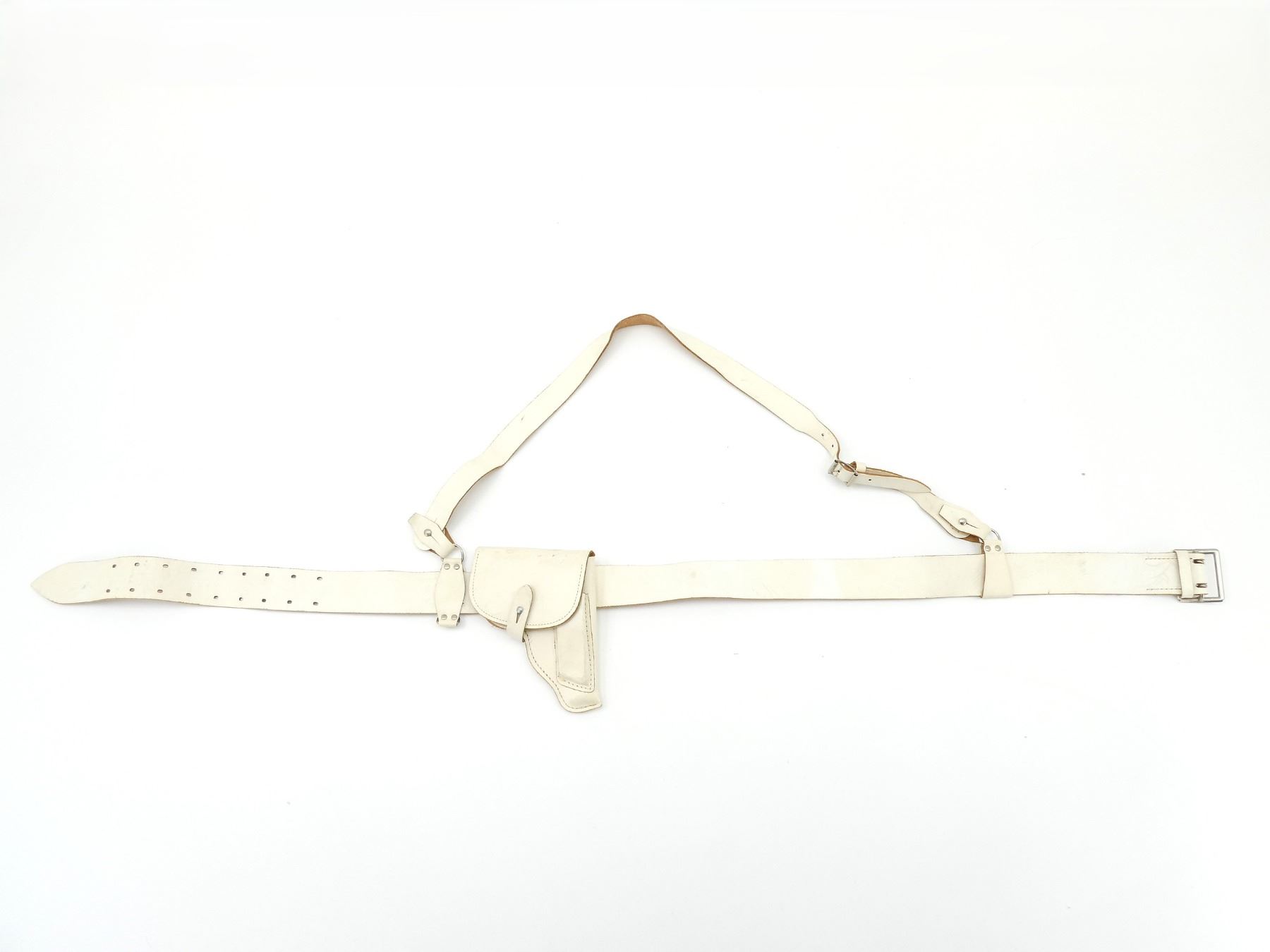 EAST GERMAN MILITARY WHITE LEATHER BELT WITH SHOULDER STRAP AND HOLSTER
