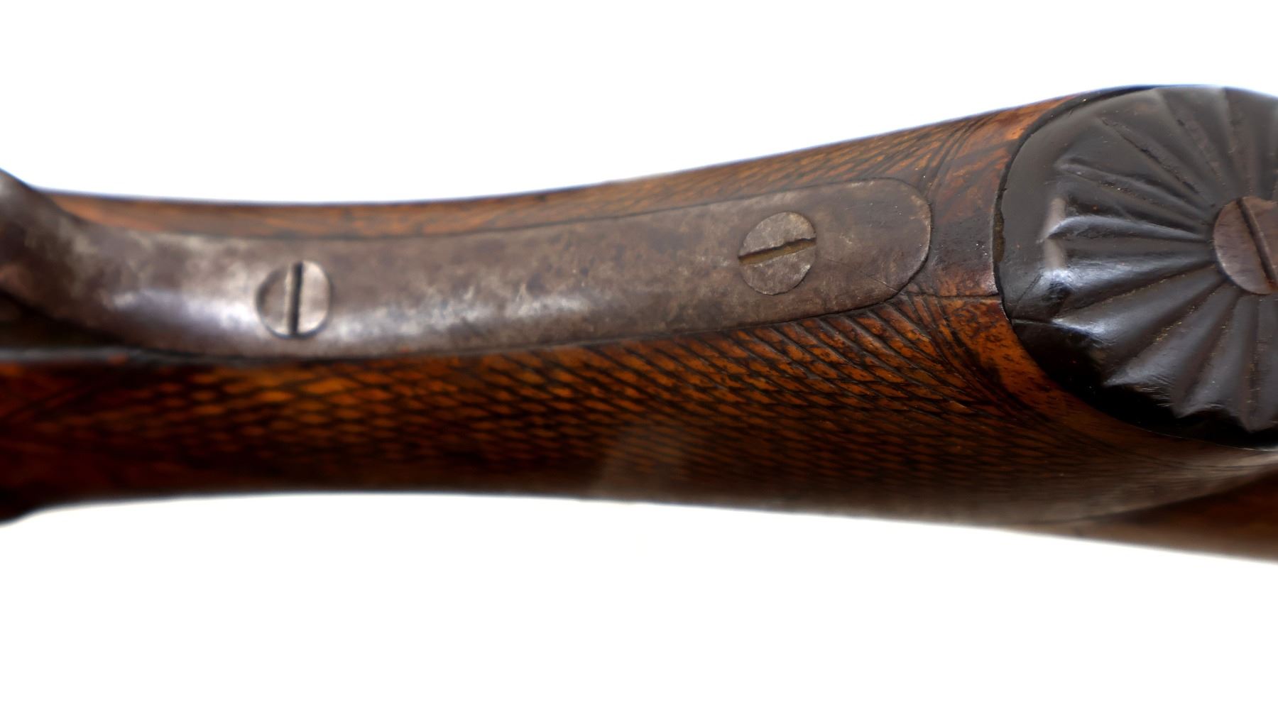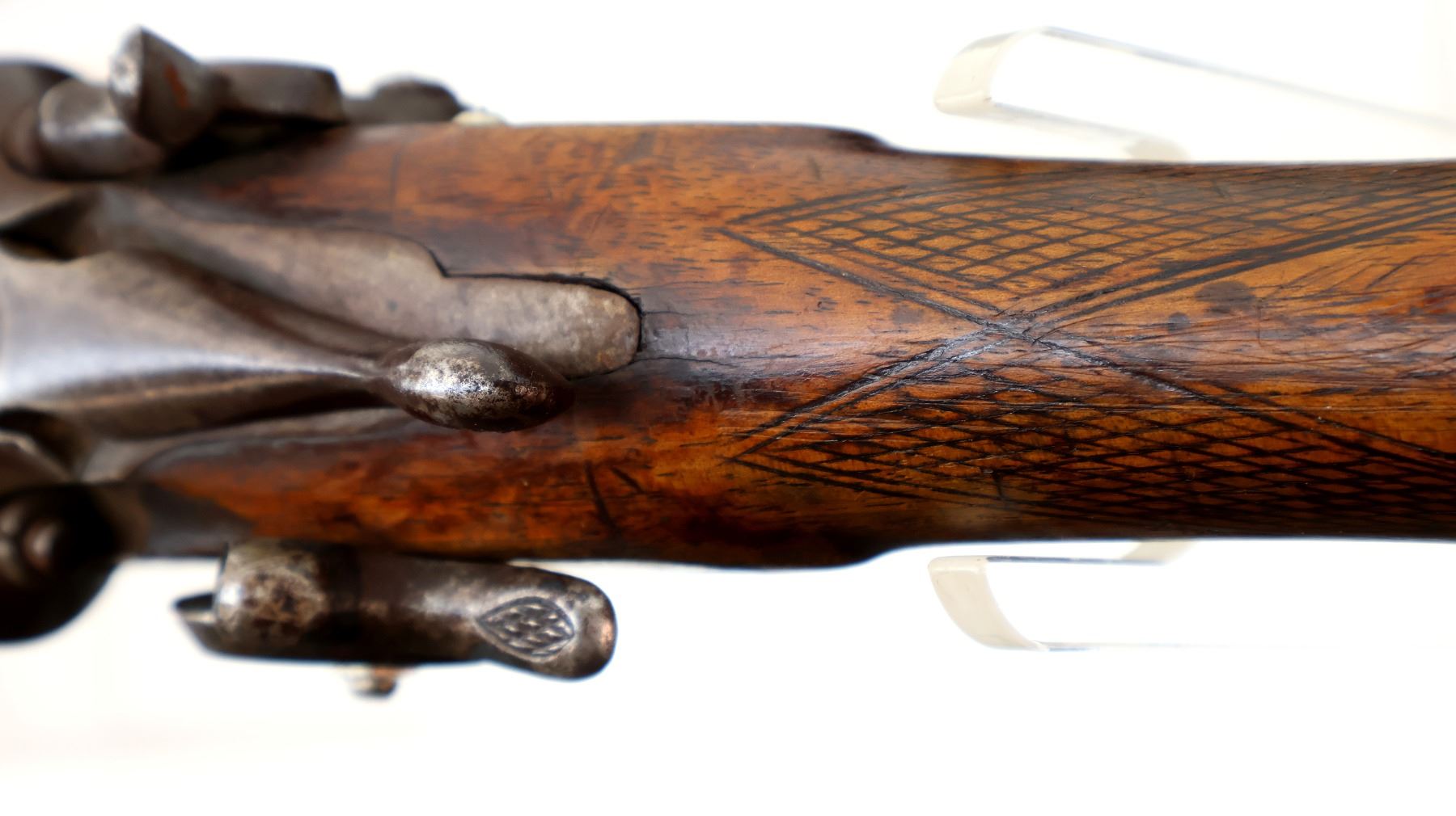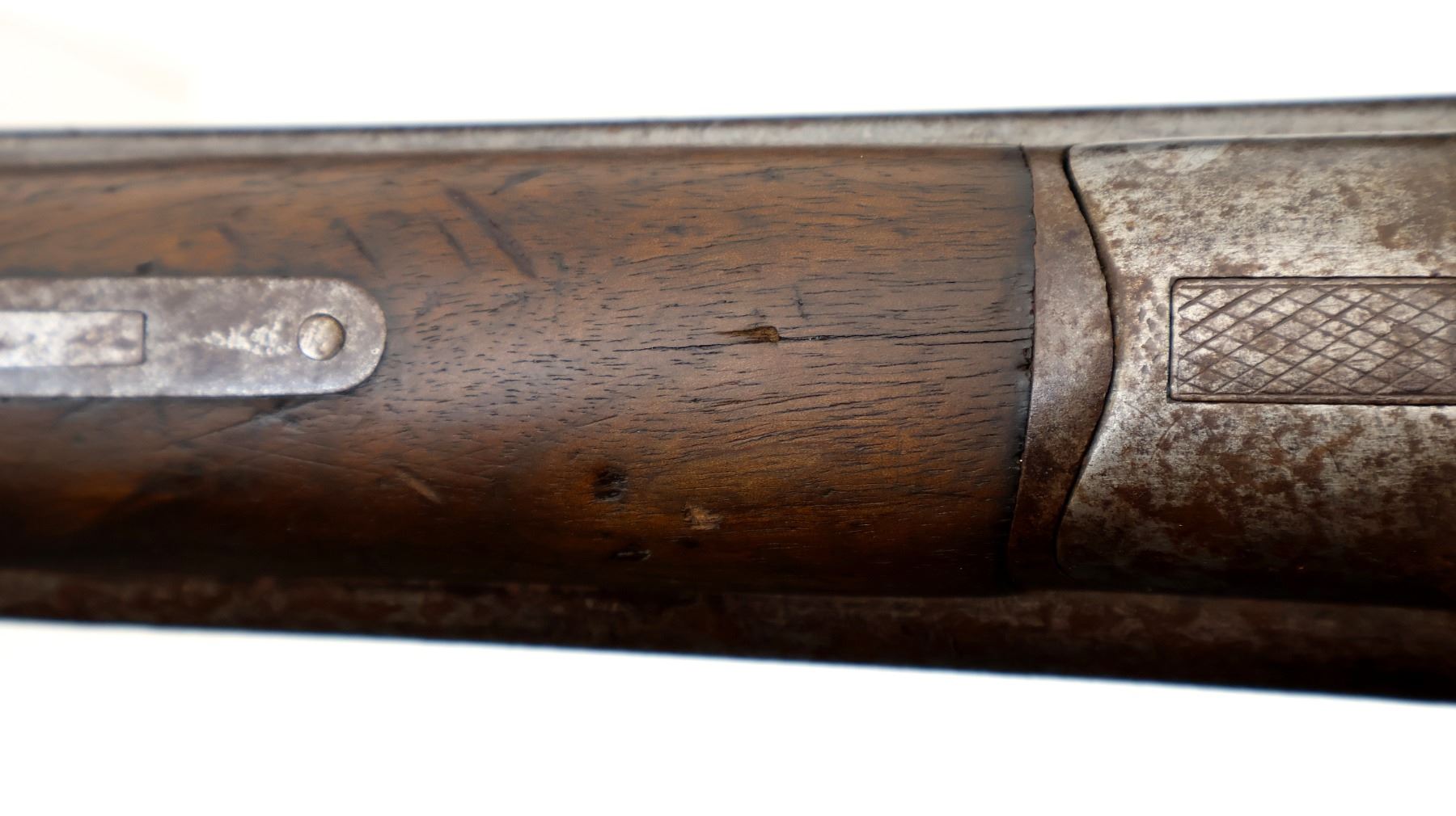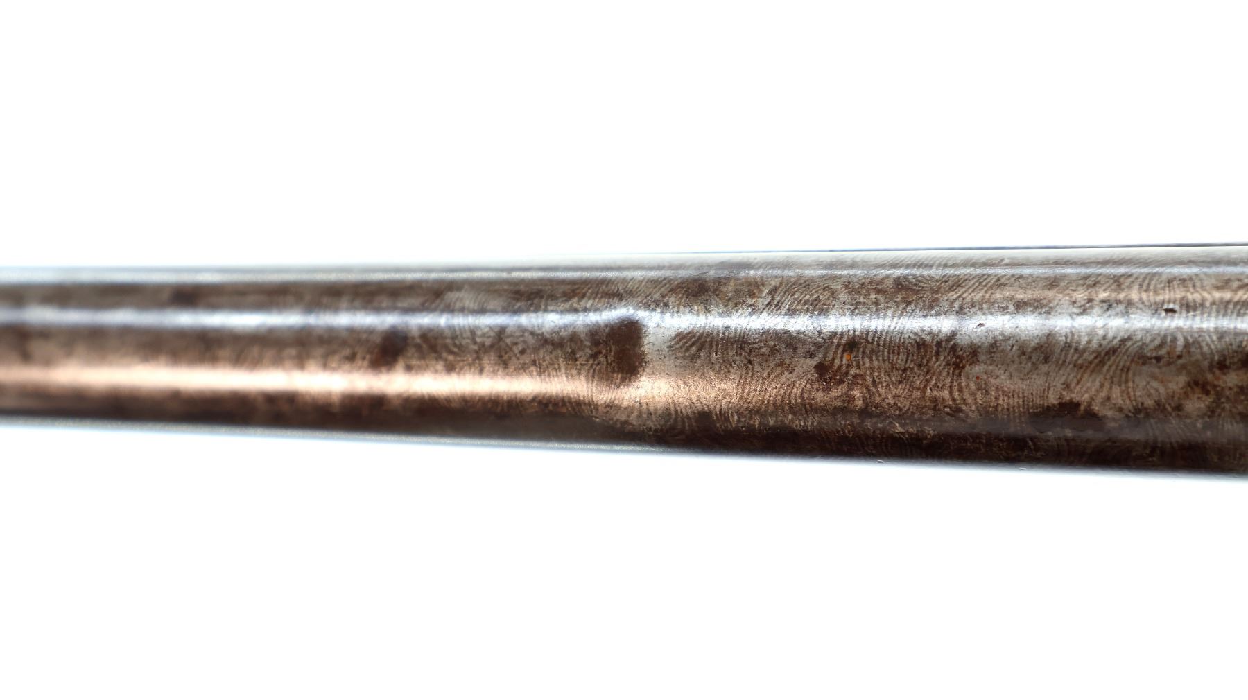 Wear: Metal finish turning brown with pitting, rust, scratches, handling marks and wear. Stocks show marks, scratches and wear.