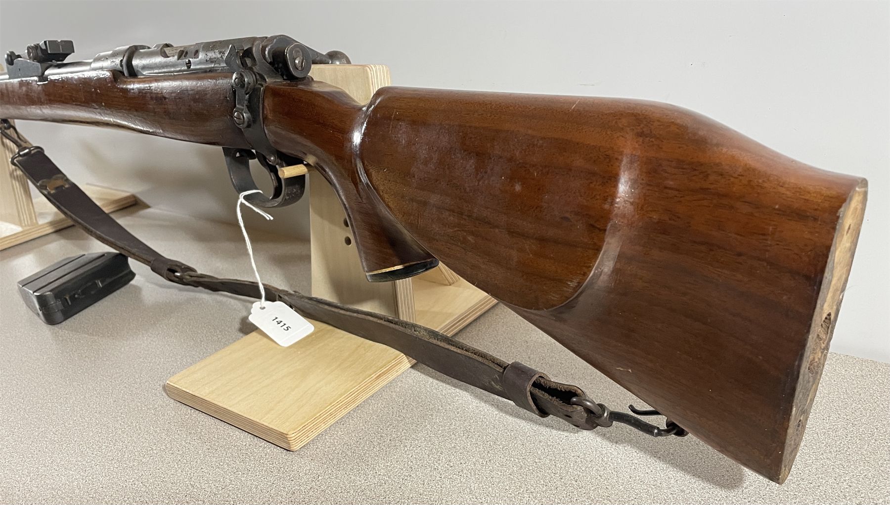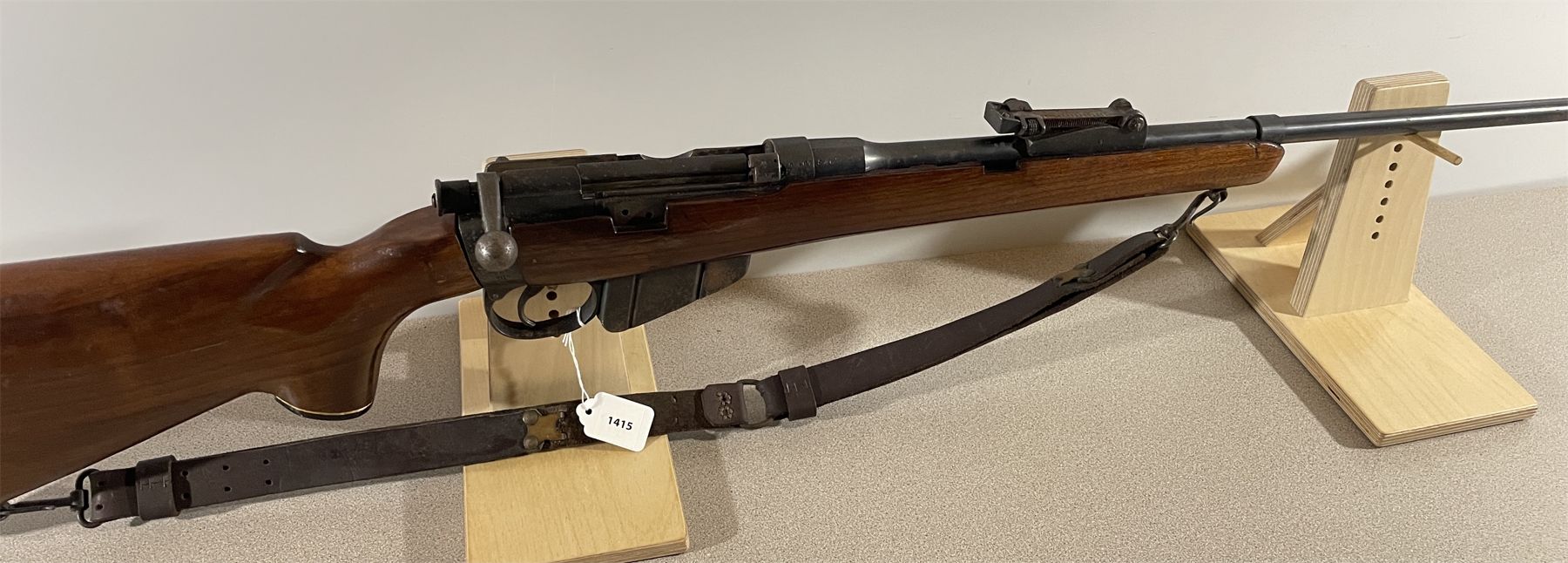 CONDITION: F OVERALL INCLUDING BORE. RUST. BUTT STOCK CHANGED & LOOSE. MISSING BUTT PLATE. SPECS: MARKED CDN BROAD ARROW. EXTRAS: LEATHER SLING. S/N: 5467.