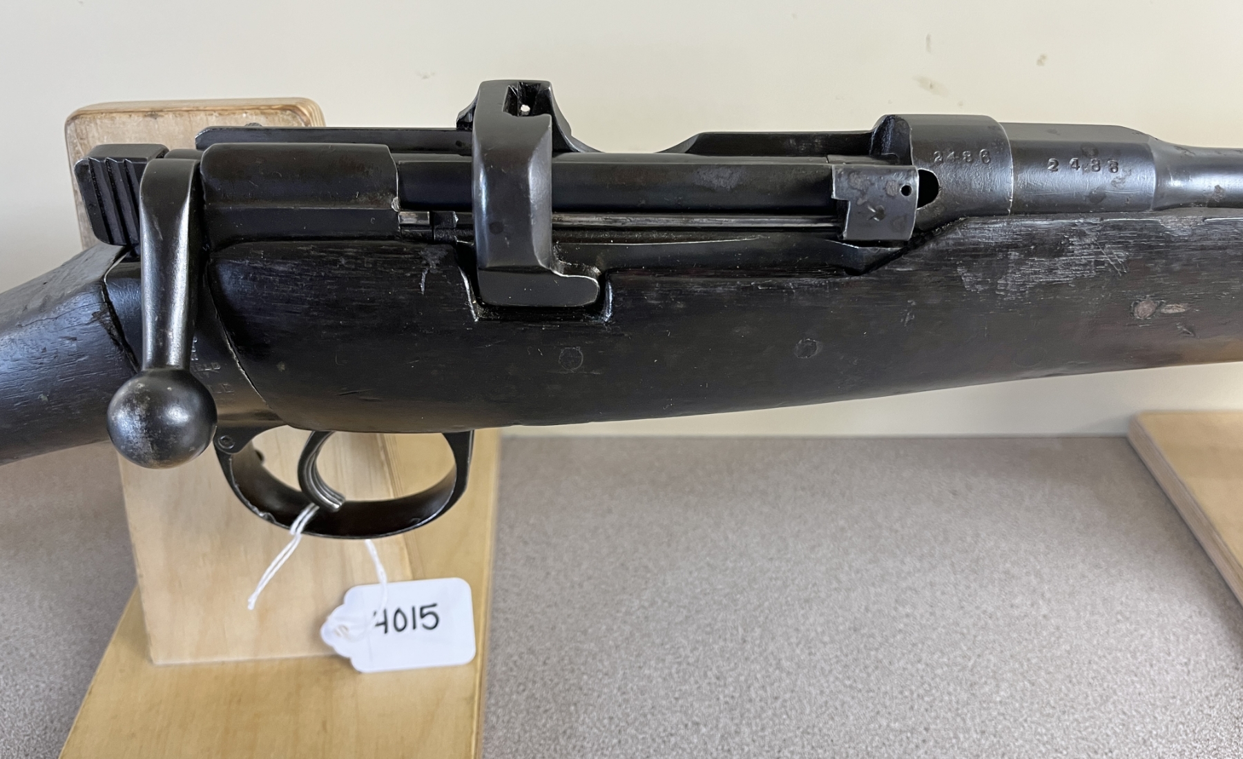 CONDITION: F OVERALL INCL BORE. MISSING 1X RECOIL PLATE SCREW. SPECS: 25 1/4IN BBL W/ IRON SIGHTS. FIXED SINGLE SHOT MAG. EXTRAS: NONE. S/N: 2486.