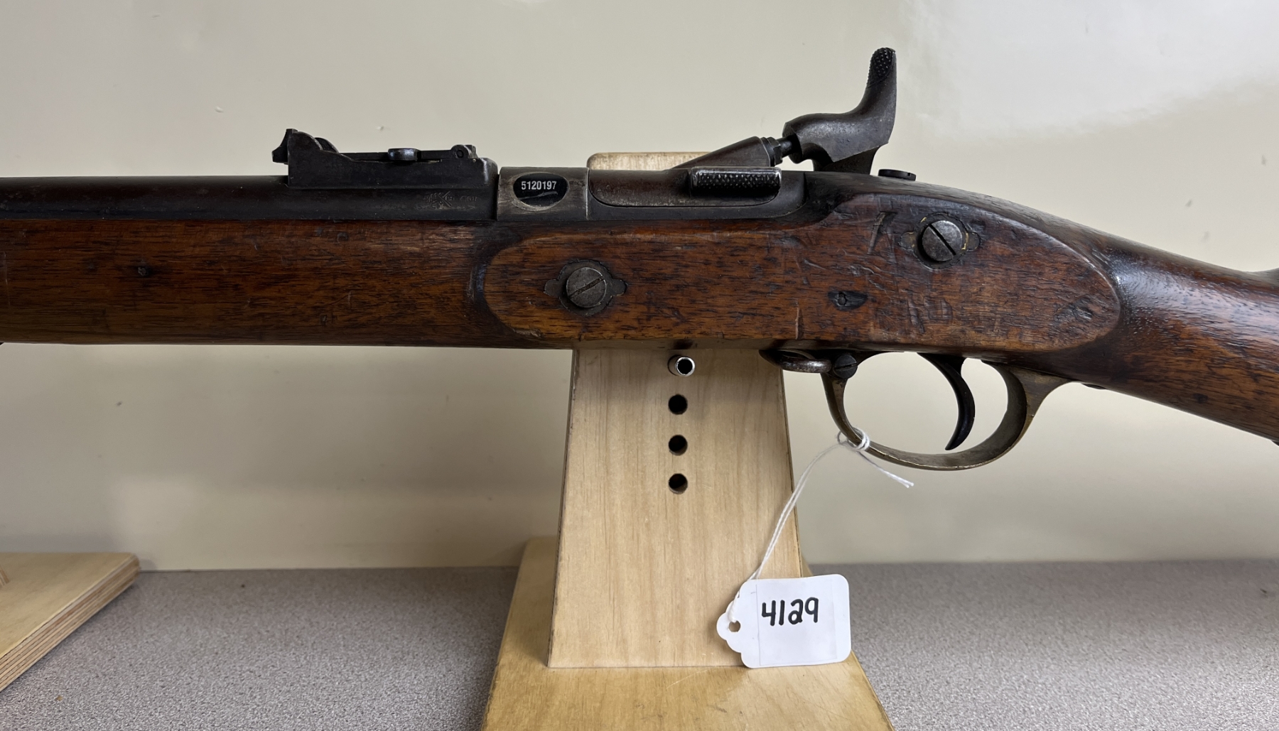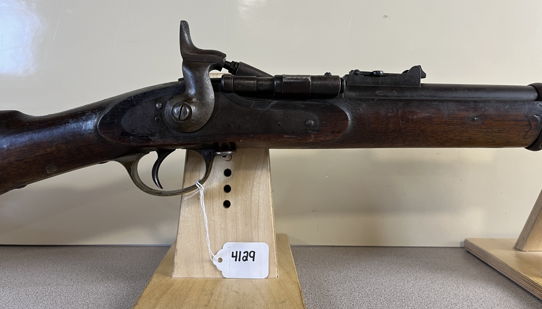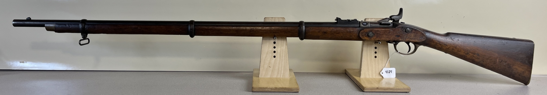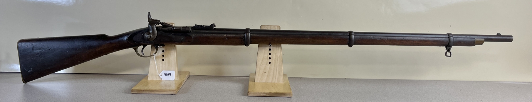 CONDITION: G OVERALL INCL BORE. MISSING FIRING PIN, APPEARS TO HAVE A PERCUSSION NIPPLE IN IT'S PLACE. SPECS: 36-1/2IN BBL. BROAD ARROW OVER WD ON BLOCK. EXTRAS: NONE. S/N: 2597 ON BLOCK.