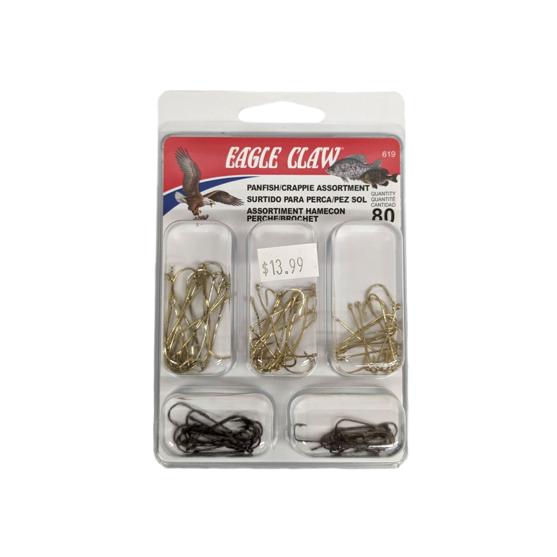 Eagle Claw Panfish/Crappie Hook Assortment (80 Pack) Sku 619This Lot is for One Brand new, sealed Unit. UPC : 47708637602