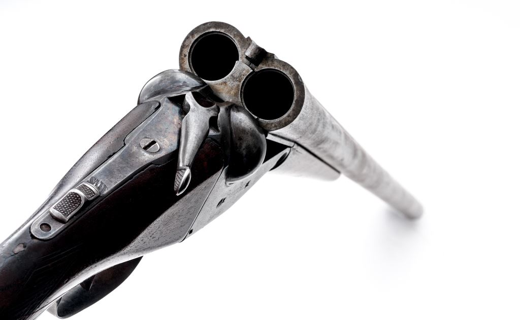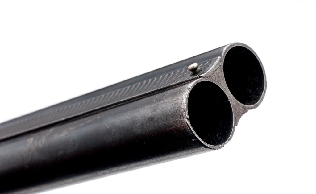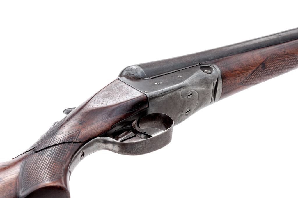 Early Parker Trojan Side-by-Side Shotgun, #168285, 12 ga., 30'' Trojan Steel barrels with early production small rib extension, typical Parker ''U''-shaped barrel rib, blued finish, automatic safety, double triggers, checkered walnut stock and forend, and ventilated rubber recoil pad. No. 2 size frame, with matching numbers on barrels and forend metal. Length of pull is 13.75'' with 12.75'' original wood to front trigger. Condition is fair, with a badly broken and poorly repaired stock. Stock has been broken at the wrist, pinned, with cracks running to the rear of the receiver. There is an extra screw added to the trigger guard to reinforce the grip. There is movement to the joint, so further repairs are warranted. Barrels have bright shiny bores, with a few minor dings in the right barrel. Blued original finish is thinning with heavy wear around the forend area, light rust patina in spots, scuffs, and scratches. Receiver has lost most all of its case colored finish, with only traces left in some protected areas. Trigger guard is mostly brown on top with wear to shiny at the wrist. Stock is broken as described above and also has some minor scratches, light depressions, and small gouges. The forend wood is in very good condition, showing light use, and a few small dings. Barrel condition and tight action lock up, makes this a project worth restoring for more years in the field. Est.: $300-$500. (C&R)