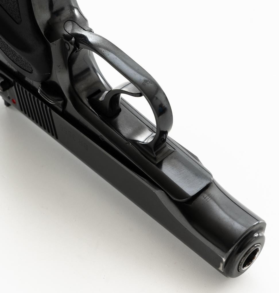 East German Makarov Semi-Automatic Pistol with Two (2) Magazines and Holster, #BR3556, 9x18mm cal., 3.68" barrel, blued finish, textured black plastic one piece grip with finger rest, blade front sight, and fixed rear sight with "U"-notched groove. Both blued magazines are unmarked and in very good condition. Brown leather holster markings have been covered by a black marker under the flap. Holster is in very good condition, with light wear and impressions to the finish, all stitching and fittings are present. Pistol is marked with "(circle)" in diamond, boxed "K100", and "62" date on left side of the frame. Matching numbers on frame and slide. Import marked on right side of the frame. Condition overall is fine, retaining approx. 90% blue, with frosting to the front grip strap. Grip is a modern replacement and in excellent condition. Action operates smoothly. Bright bore rates excellent with well-defined rifling. Est.: $400-$600. (C&R/PPT)