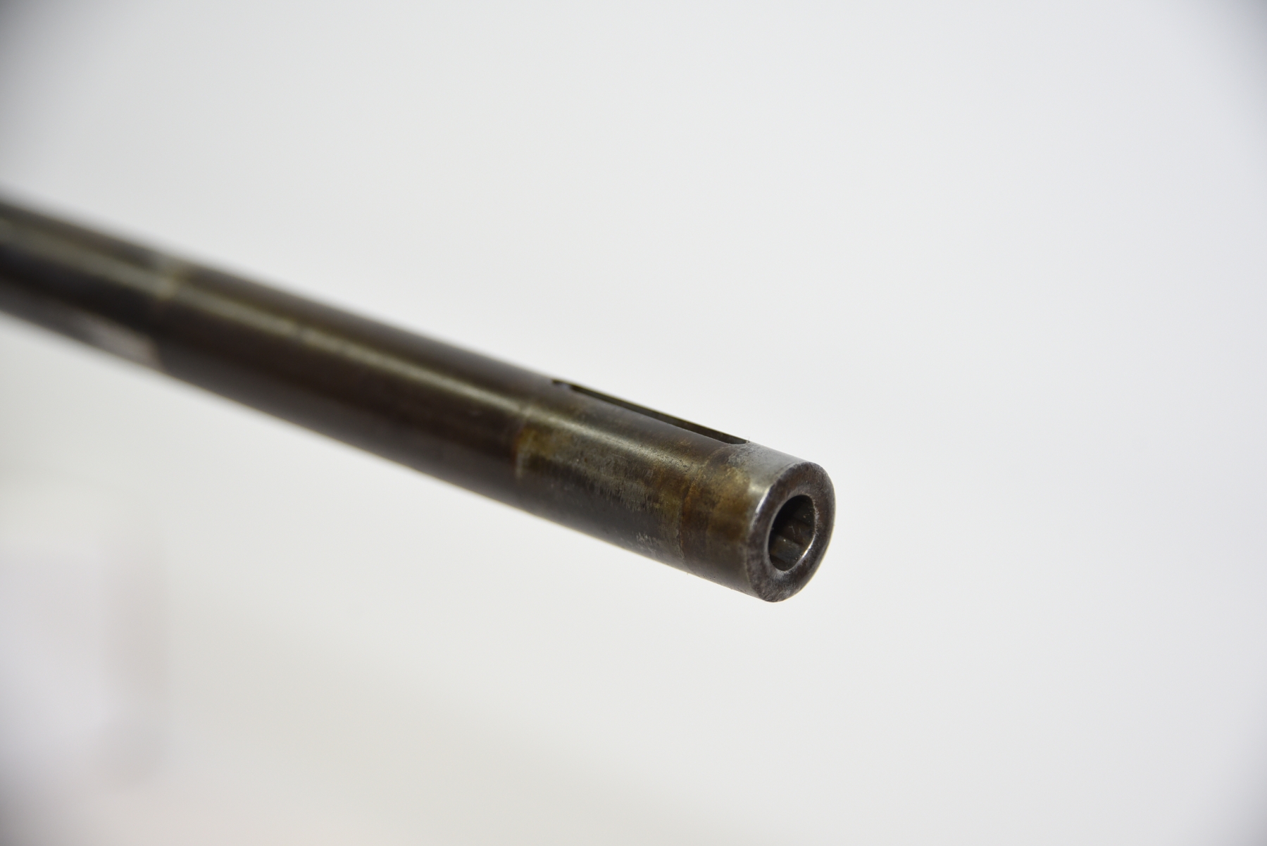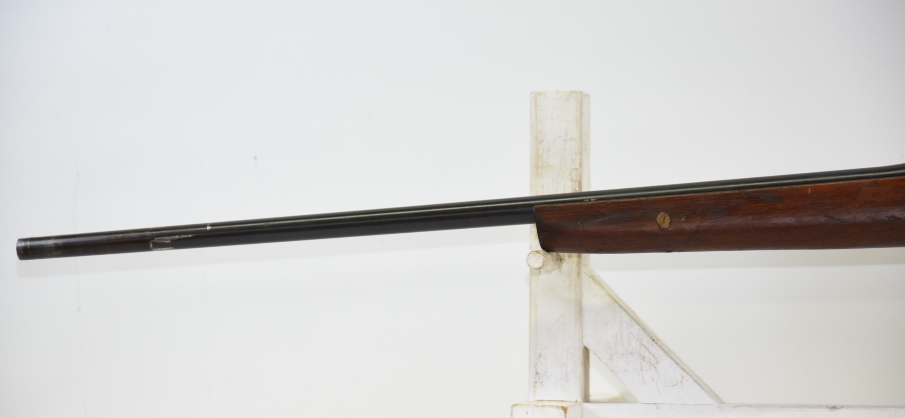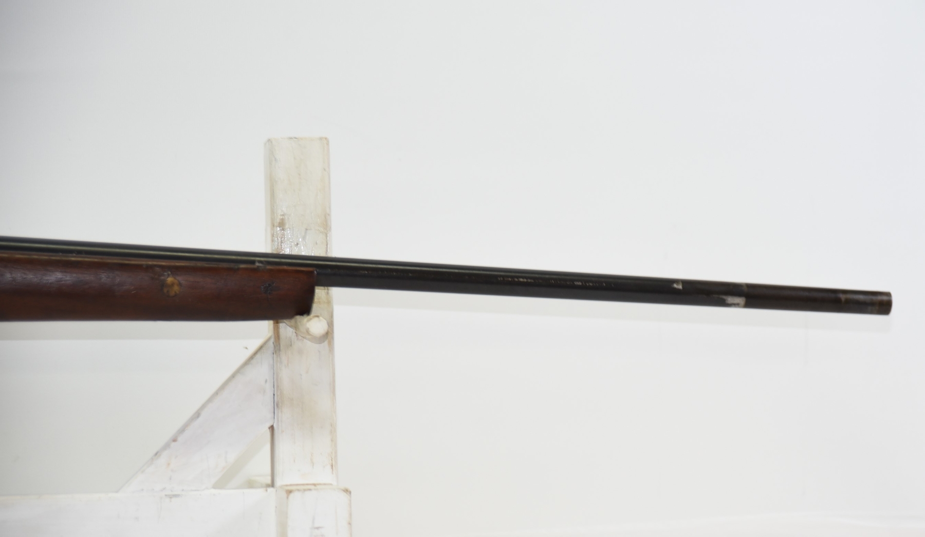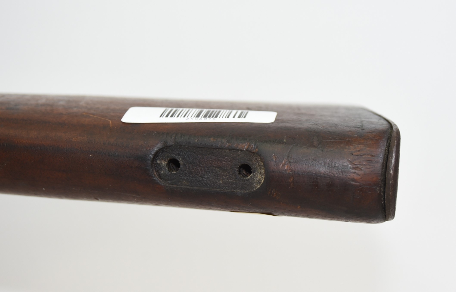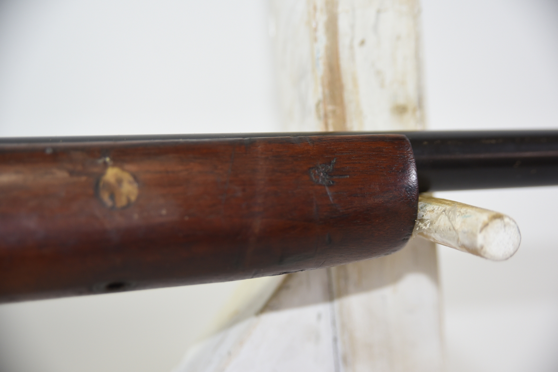 Wood stock shows scratches, scuffs, light dents, finish wear; condition is less than fair.